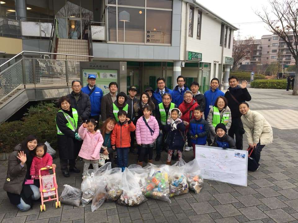 お子さまからシニアの方までみんなで街を歩きながら美化活動をします。ラジオ体操で体を温め、ルートに分かれて会話を楽しみながら歩きます。