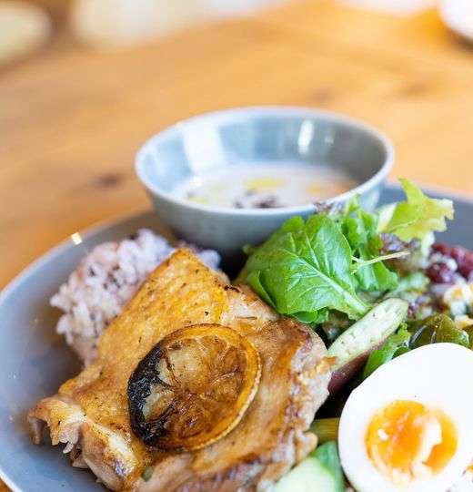 「CAFÉ&SPACE L.D.K.」では地域の農家や養鶏場と連携し、カフェスタッフが心を込めて作ったお料理・スイーツを楽しめます。