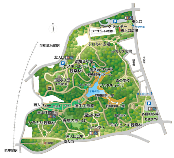 総面積32haにわたり、大きく「山」「谷戸」「里」の3つのゾーンに分けられています。