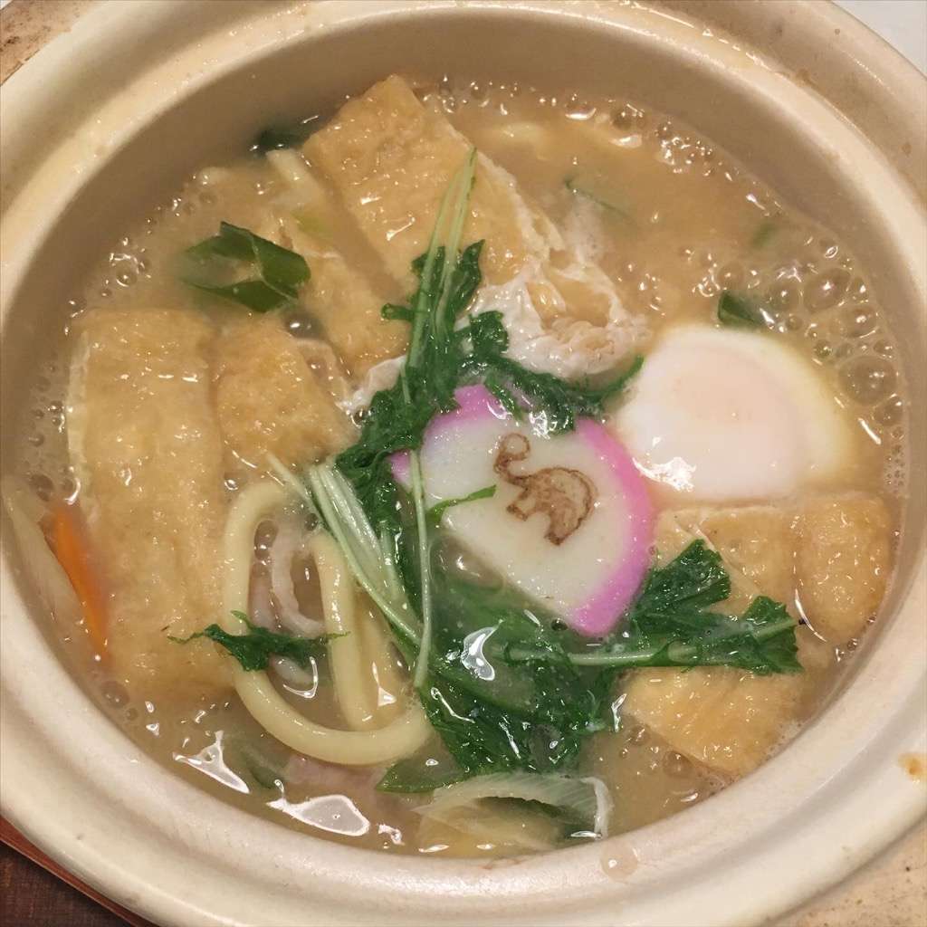 ぞうさんのかまぼこがかわいい煮込みうどん(白味噌)
