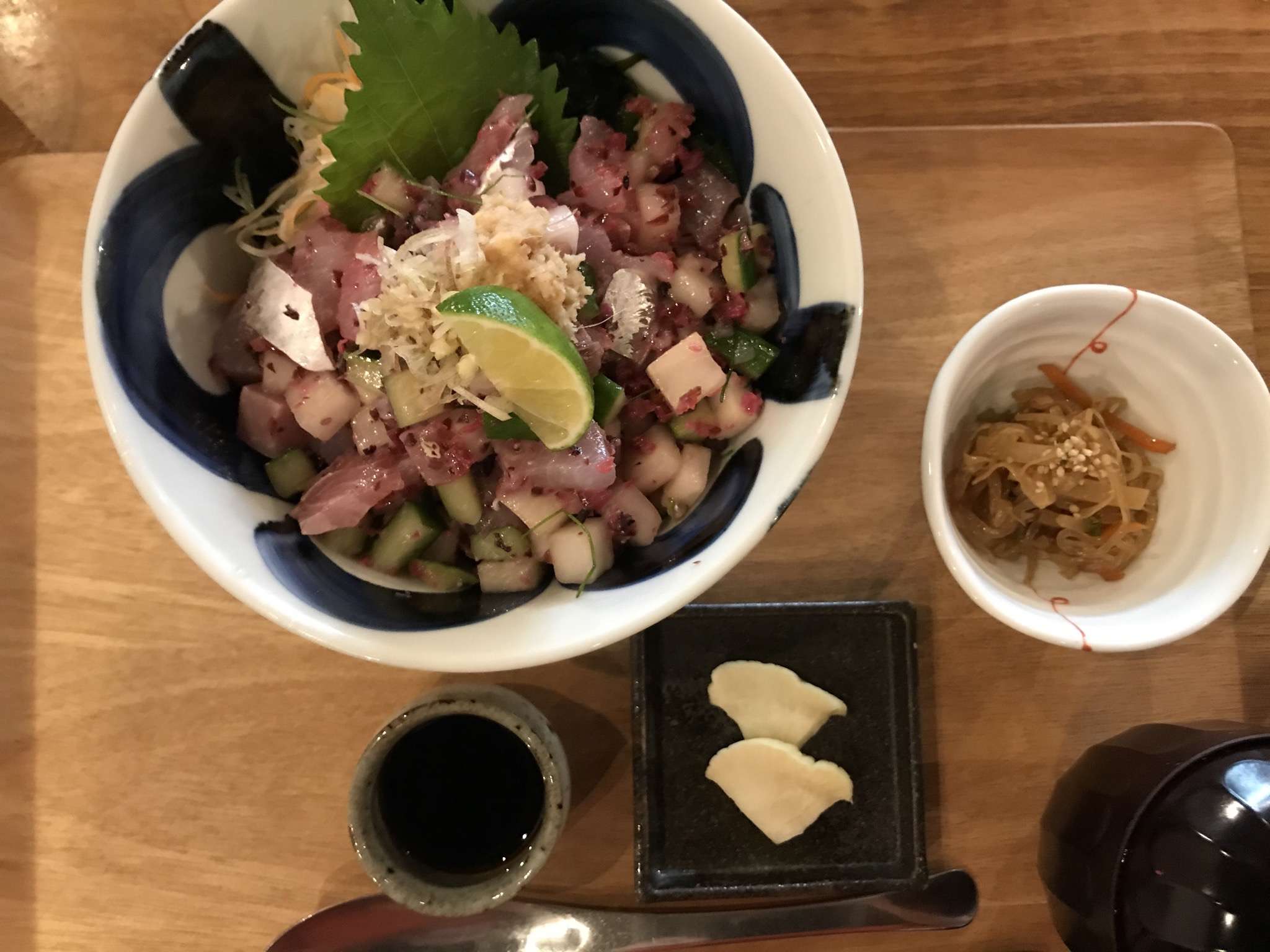 アジのたたき・野菜が入っていてさっぱりとした丼ぶり。