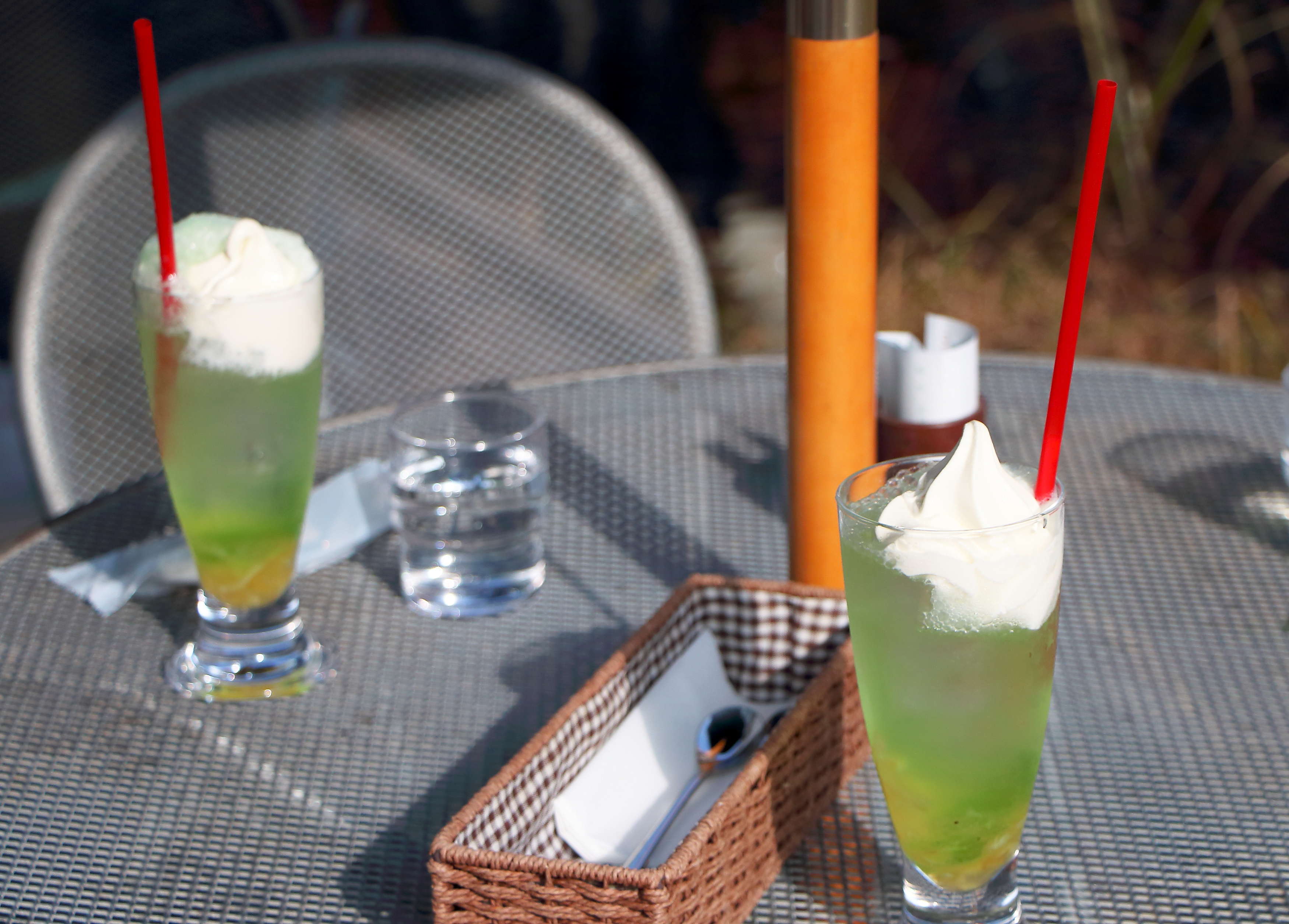 TAROのカフェにてキウイ&レモンソーダフロート。