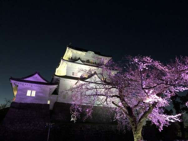 小田原城址公園では、桜の開花時期に合わせて「ぼんぼりの点灯」と「桜のライトアップ」が行われます。