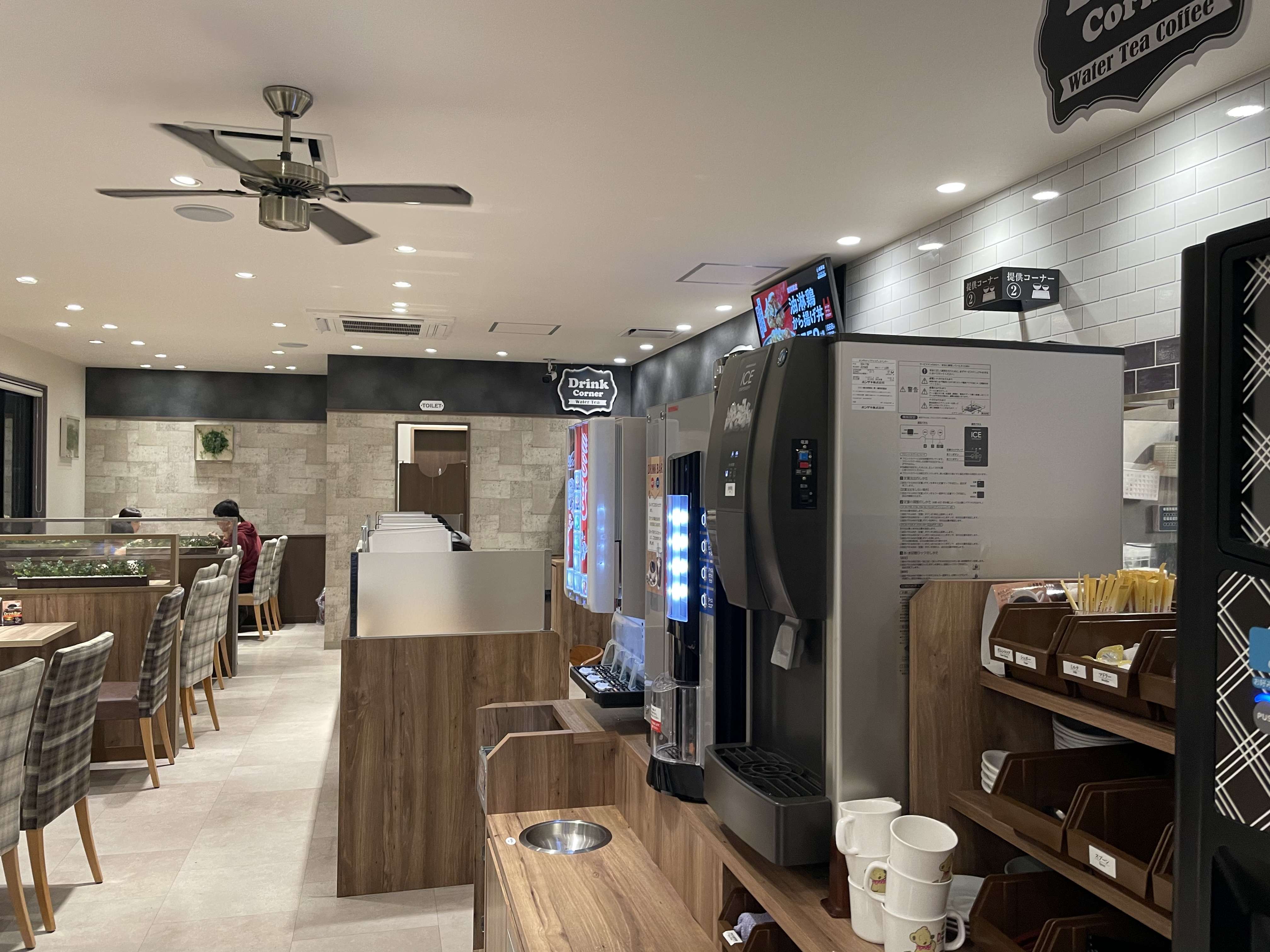 メニューも牛丼はもちろん唐揚げ丼や豚肉丼に定食、ドリンクバーまで揃っています。