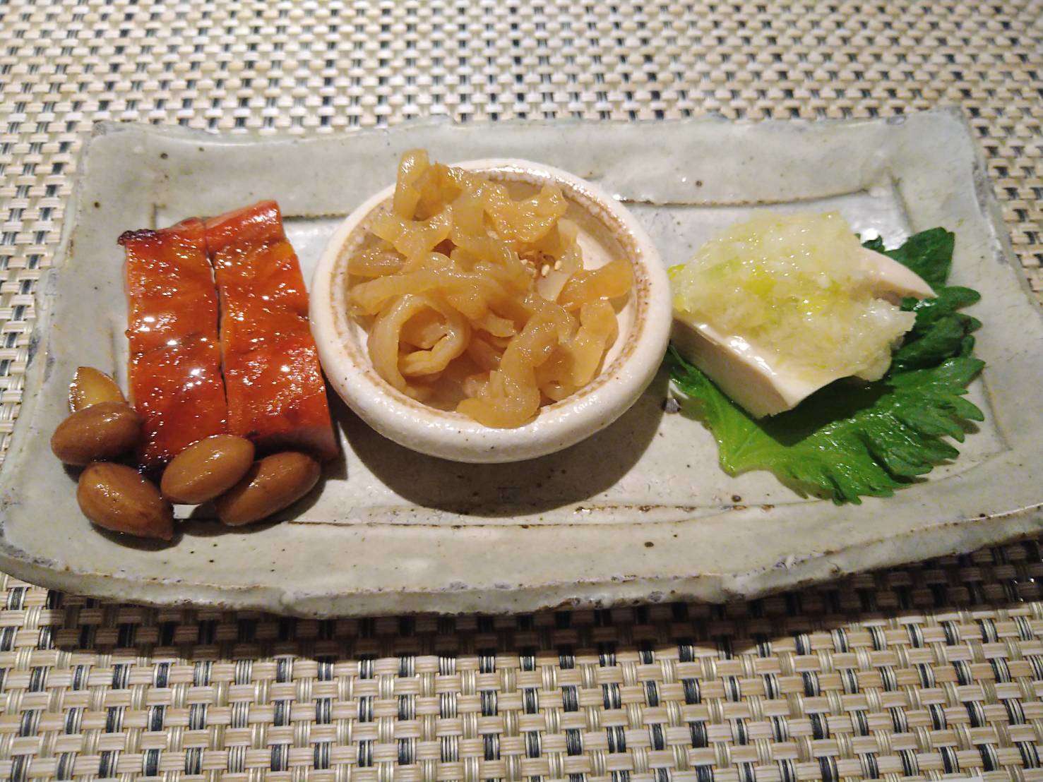 蒸し鶏、中華クラゲ、チャーシュー。