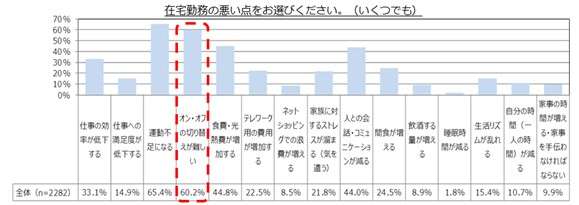 また、通勤時間がなくなったことで、「睡眠時間が伸びる」や「家事をする機会が増える」といった本来やらないといけなかったことに時間を割いていることが見て取れます。