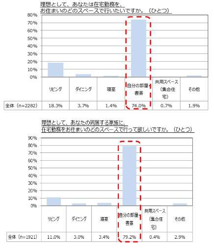約8割近くの人が、在宅ワークを行う際に書斎や自分の部屋のような独立した専用スペースを求めていることが明らかとなりました。
