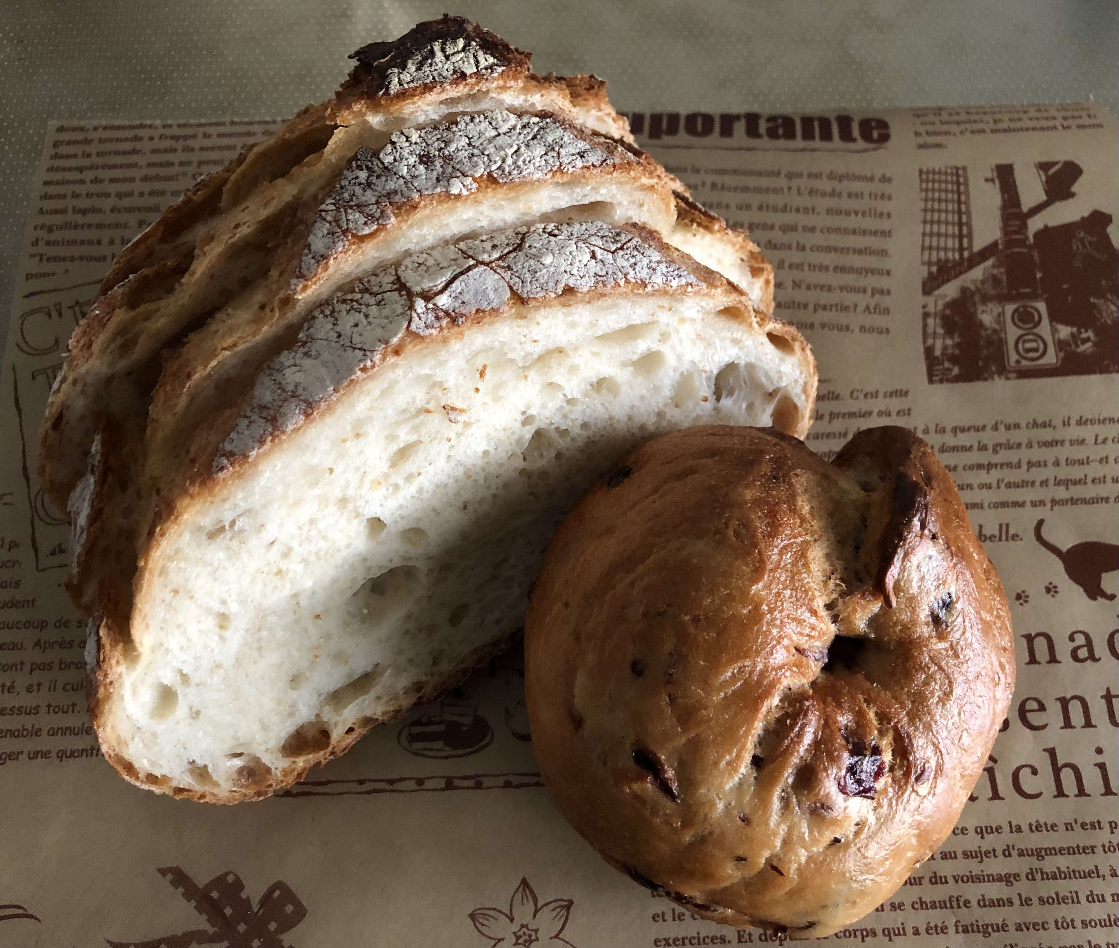 「onkä」1階のショップにはやや小ぶりなパンたちが、お行儀よく並んでいます。