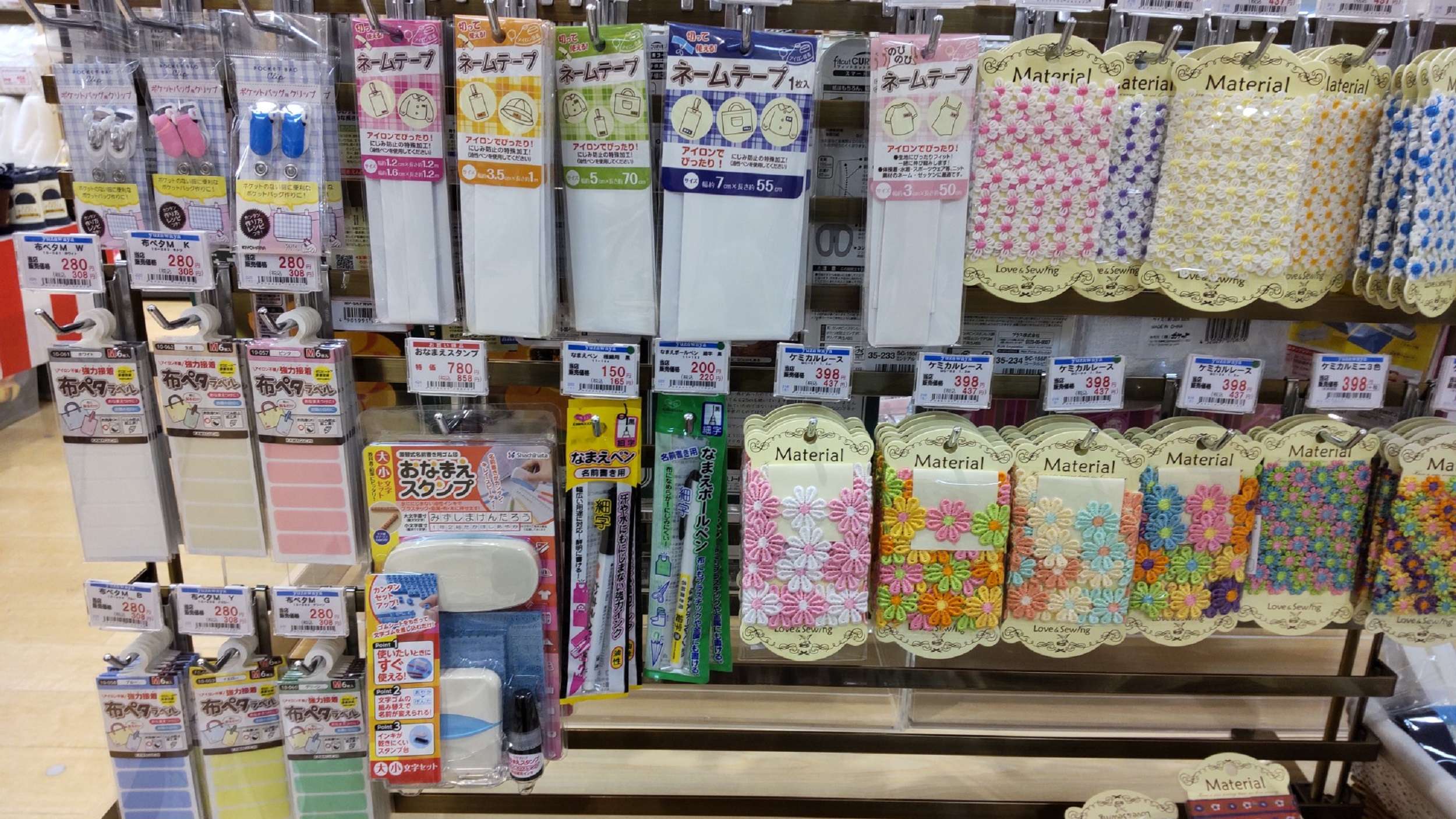 今春から子供に持たせるバッグ類のレシピ、材料なども特設コーナーができていました。