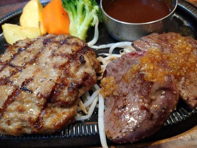ステーキとハンバーグのセットにしましたがミディアムレアで固すぎず、ハンバーグも肉肉しくて美味しかったです!
