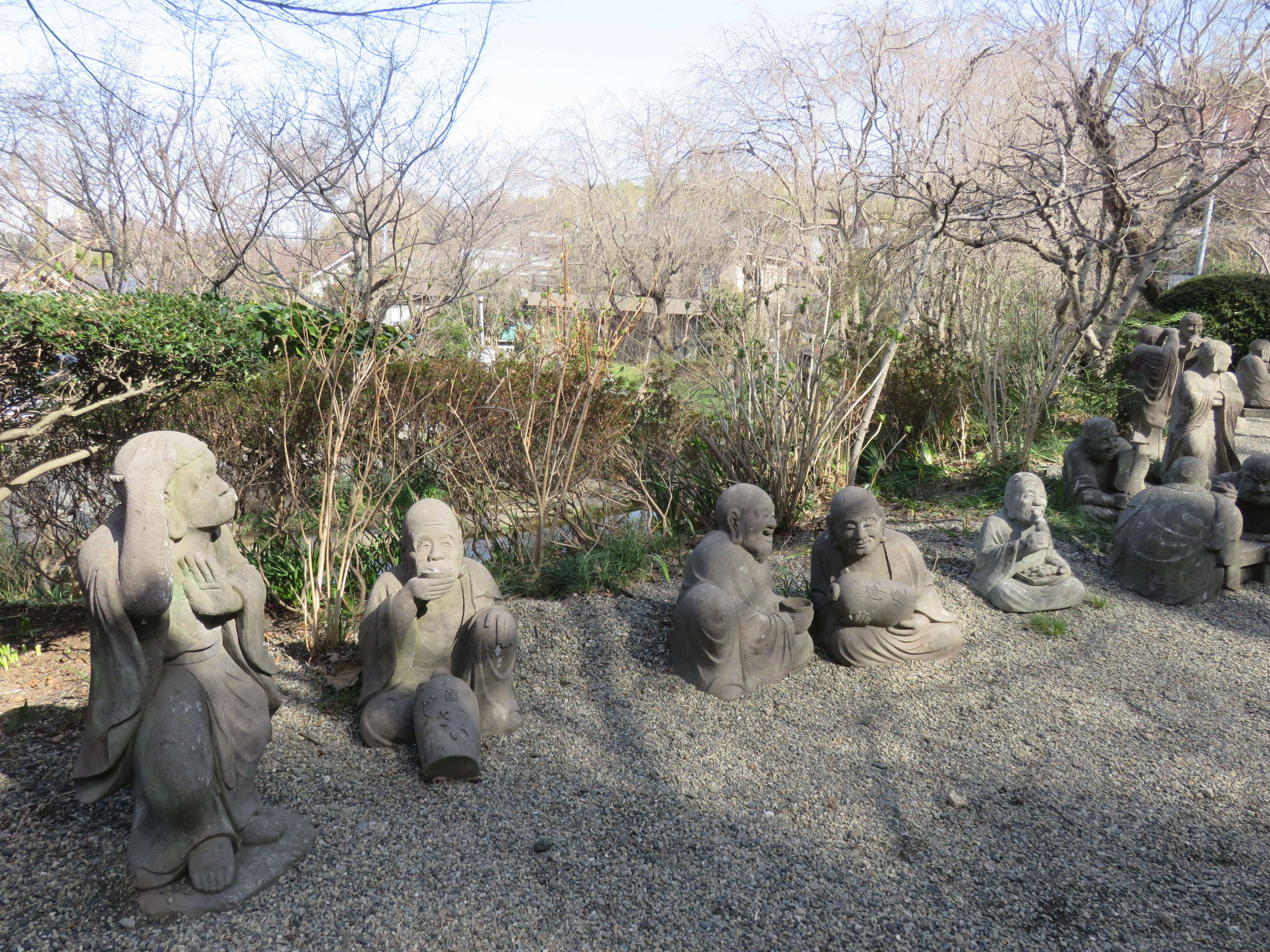 阿弥陀如来を本尊とする小さなお寺ですが、特筆すべきは境内に入ると共に出迎えてくれる羅漢像群です。