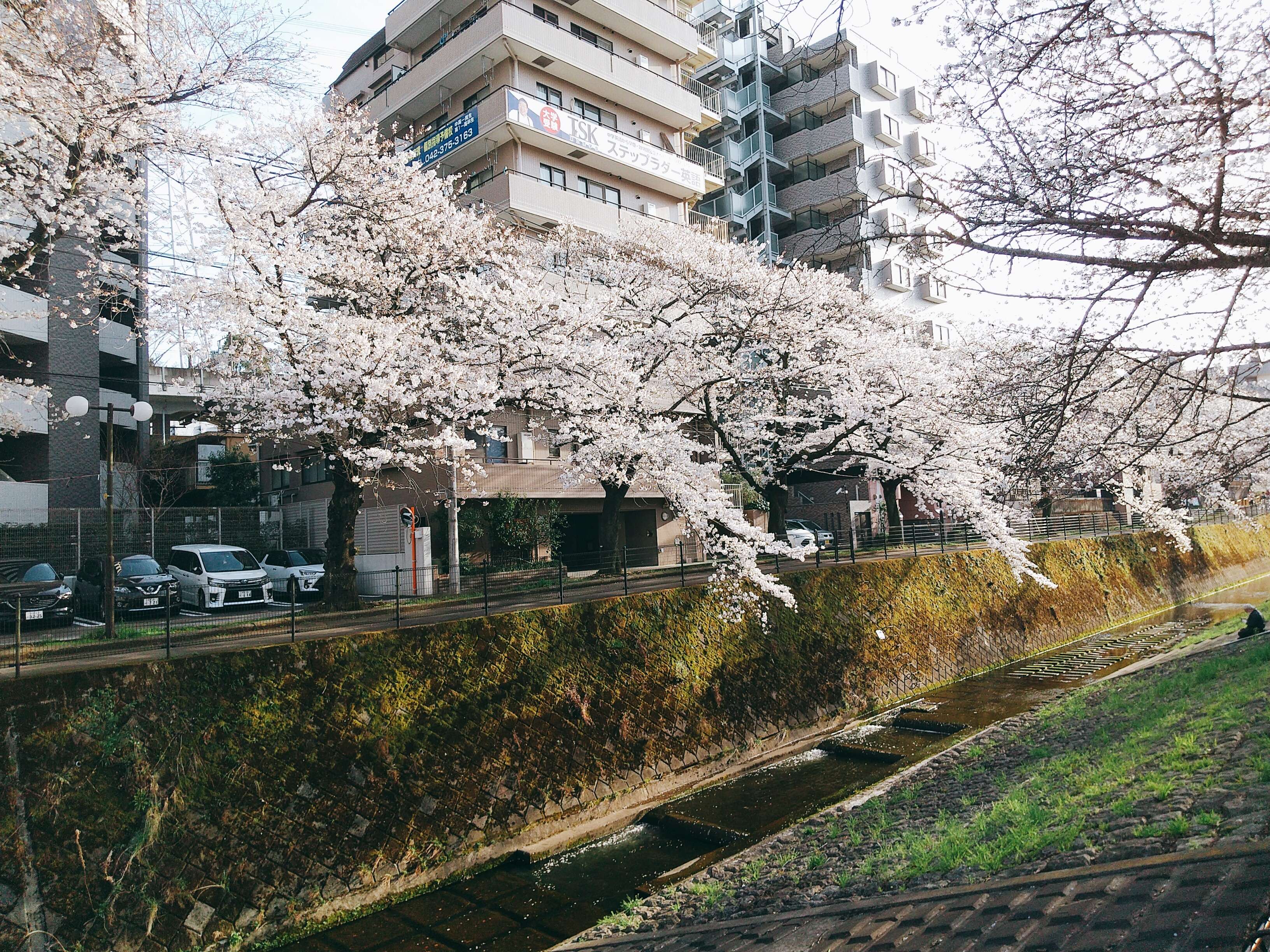 小田急多摩センター駅と小田急永山駅の間は、桜がきれいな乞田川と並行して小田急多摩線が走行しています。