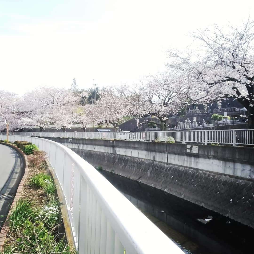 ほどなくして前方に川沿いの桜と厚木飛行場沿いの道の桜が幾重にも重なり迫力ある桜を眺められます。