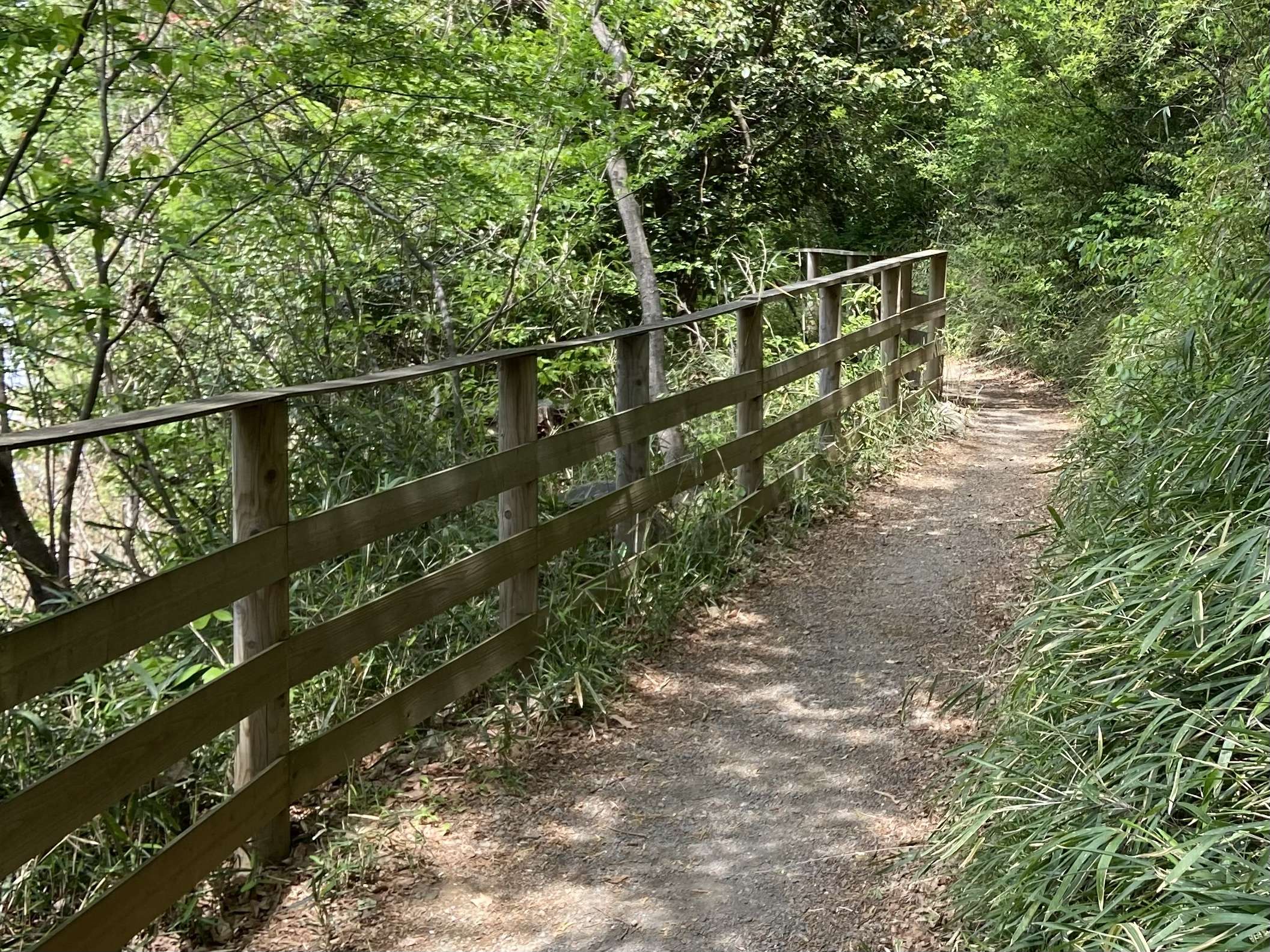 カフェを左手に見ながらさらに坂道を登っていくと、山の中の遊歩道へとつながります。