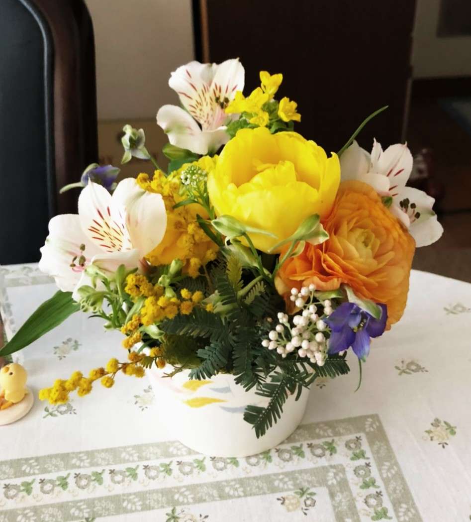 何本か好きな花を選んでアレンジに迷っていると、オーナーのおばさまが的確にアドバイスくださり、本当に素敵なアレンジが出来上がりました。