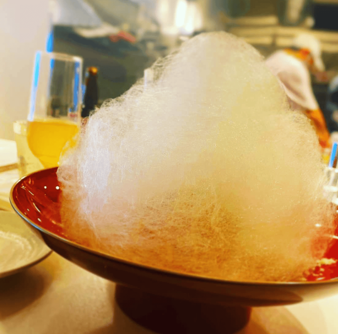 綿あめにボロネーズ?となりますが食べると甘くなく美味しいです。