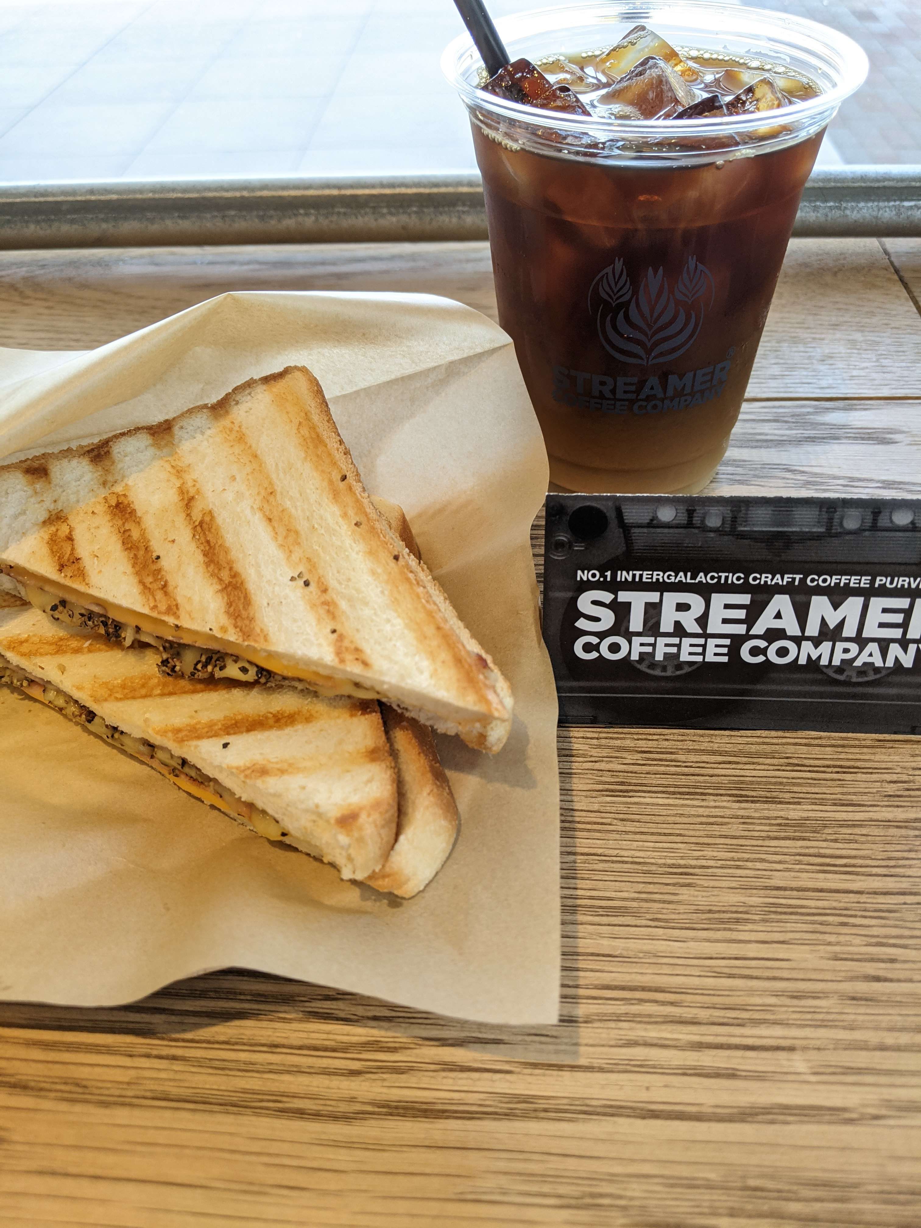 ホットサンドは黒胡椒がきいていてコーヒーとよく合います。