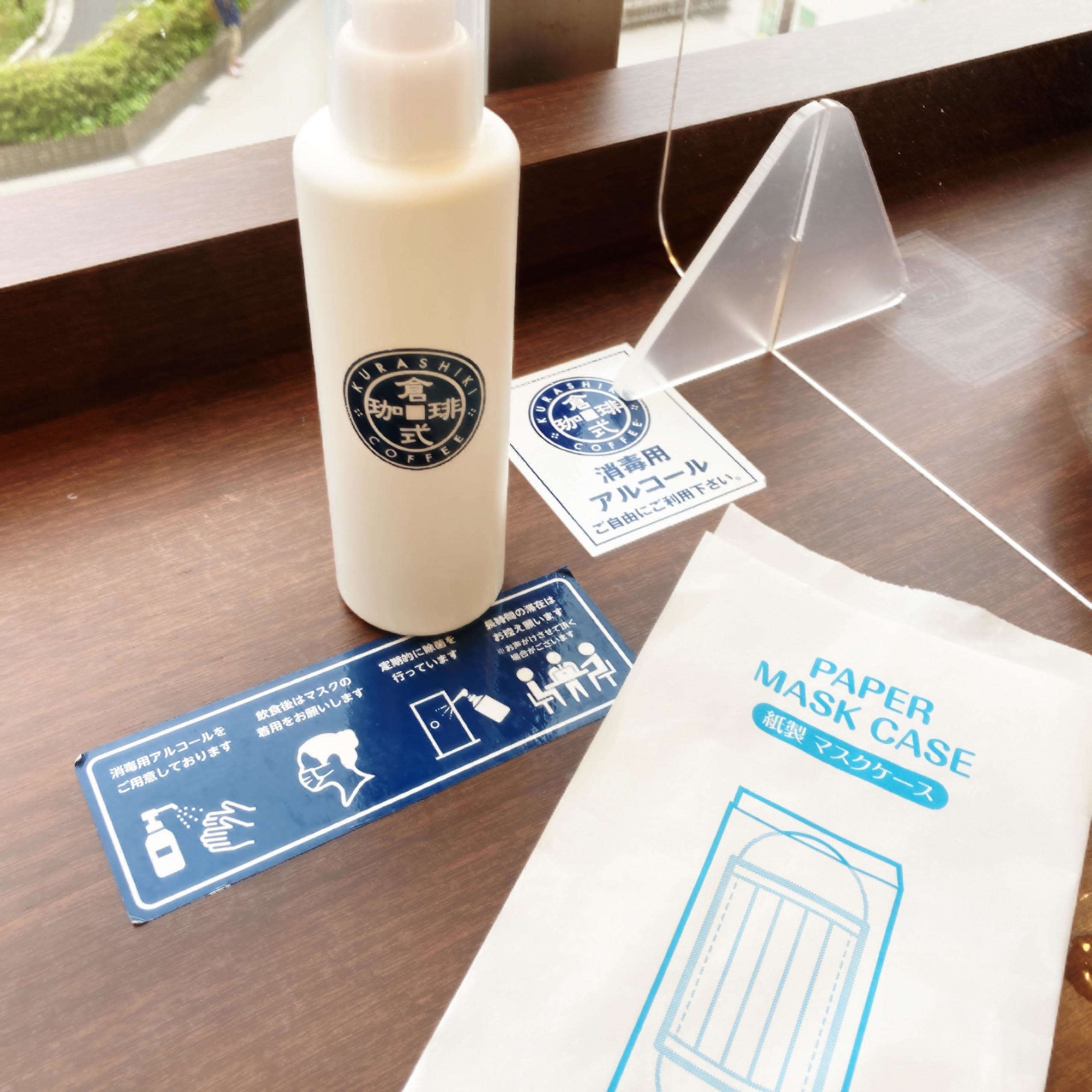 入店時はアルコール消毒、席にも消毒用アルコールがあるので自由に使えて、マスクケースもいただきました!