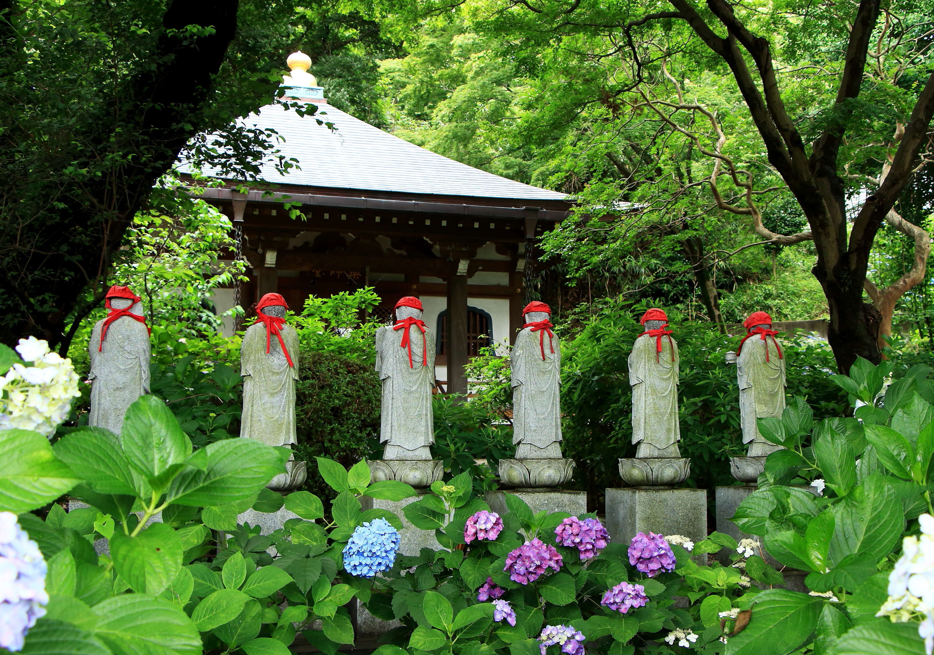 多摩区長尾にあるあじさい寺「妙楽寺」には28種約1,000株の紫陽花が植えられ、境内一面に咲いています。