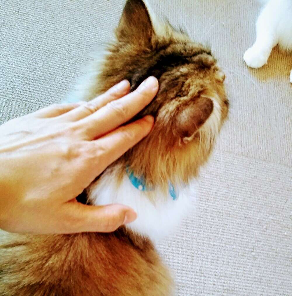 初めてネコちゃんを撫でて、餌をあげて、とても喜んでいました。