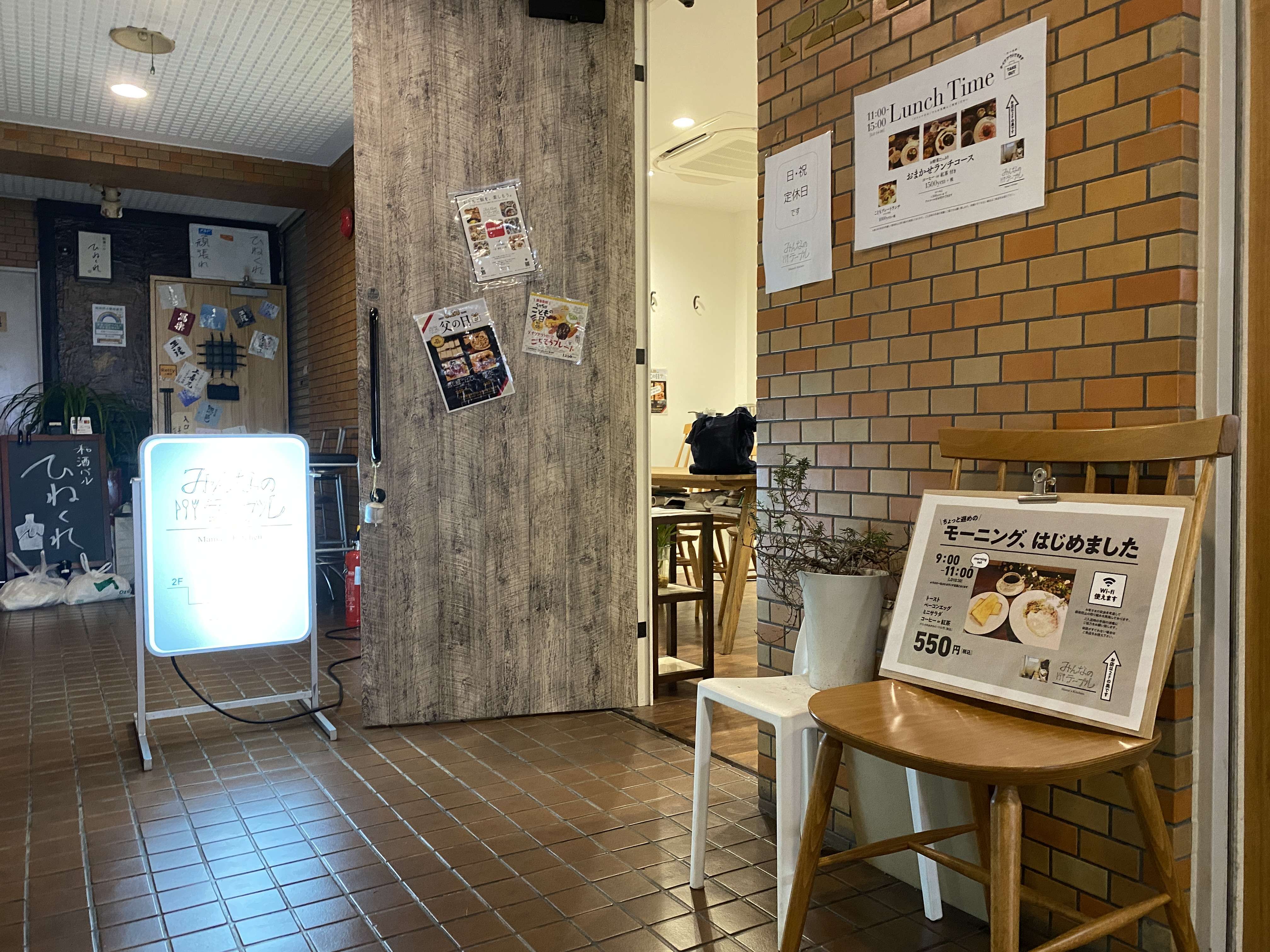 雑居ビルの階段を登って2階の通路の一番奥に「みんなのテーブル」があります。