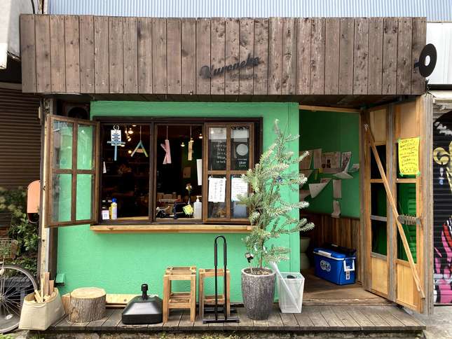 経堂駅の北口を出てすずらん通りをまっすぐ5分くらい歩いていくと、左手に緑の外壁のお店が見えてきます。