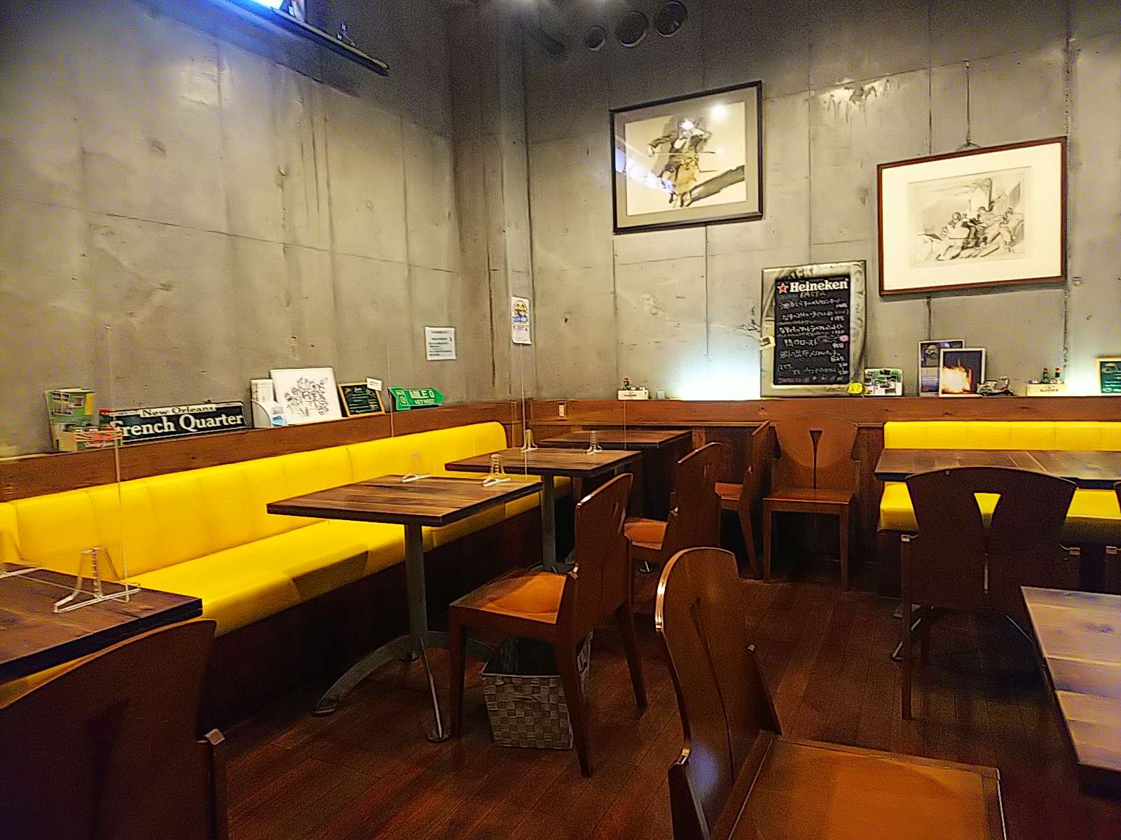 入り口を入るとすぐにカウンター席、カウンター席を通り抜けて階段を下りた半地下にはテーブル席があります。