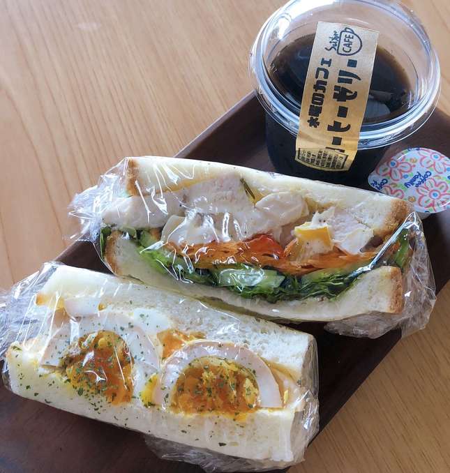 今回は燻製味玉サンドと鶏ハムサンドとコーヒーゼリーをお持ち帰り。