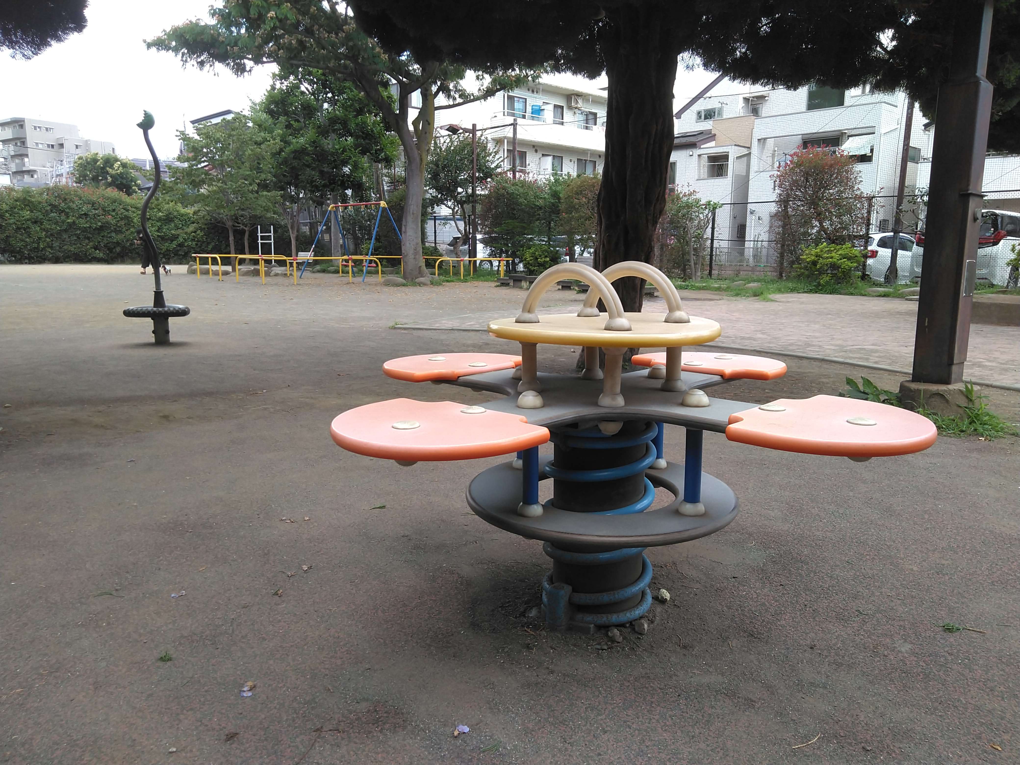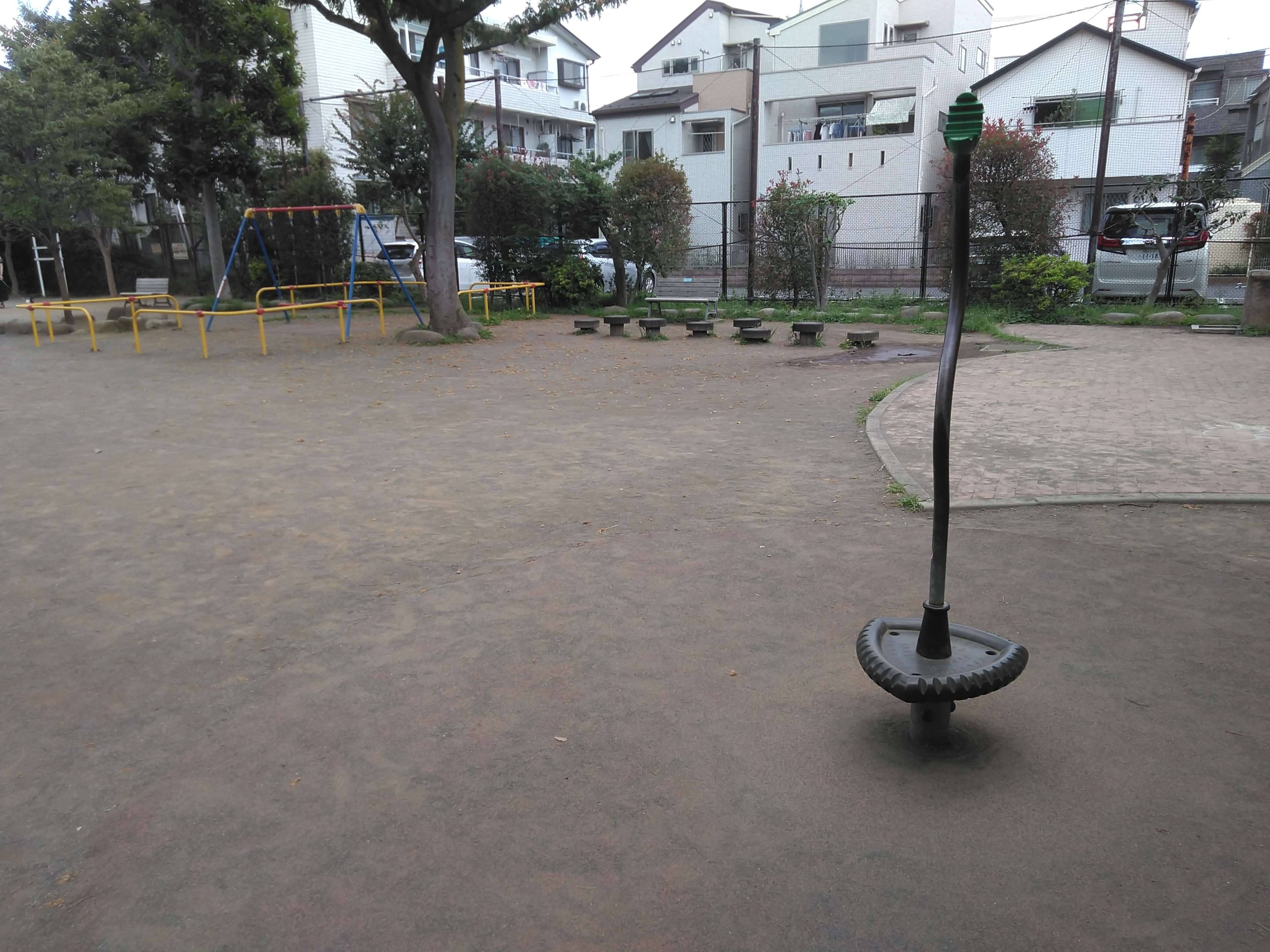 この公園は、滑り台とブランコの王道コンビと砂場以外は、今までの経験であまり見かけない遊具があり、ちょっと楽しい気持ちになります。