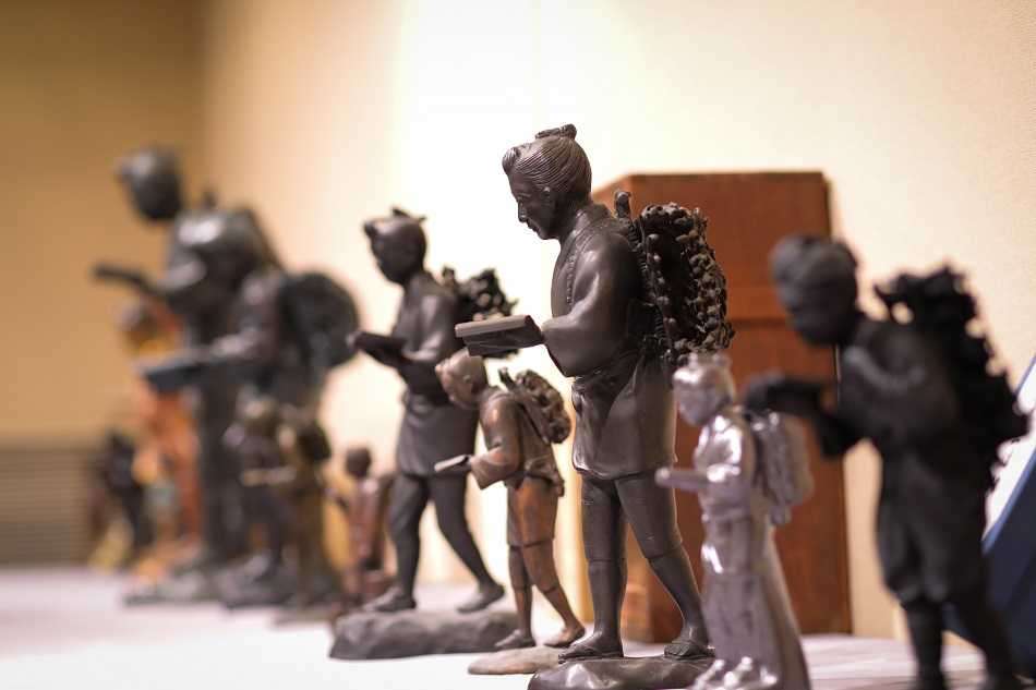 展示物には全国から引き受けた金次郎像もあります。