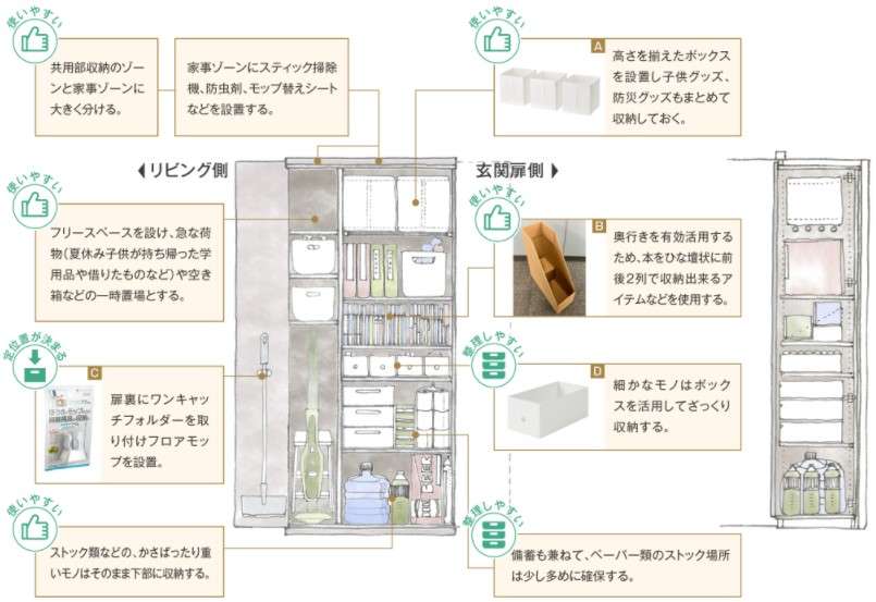 例えば、マンションの共用収納では、こんな収納方法がオススメです!