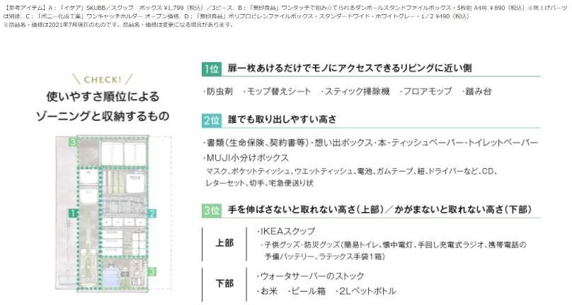 また、今回は、インタビューやアンケートでの皆様の声に加えて、“収納のプロ”である整理収納コンサルタント、本多さおりさんにも監修してもらい、基本の考え方「収納7つの法則」をつくり、効率的かつ使いやすい収納のコツをギュギュっと詰めた提案となっています(*^-^*)