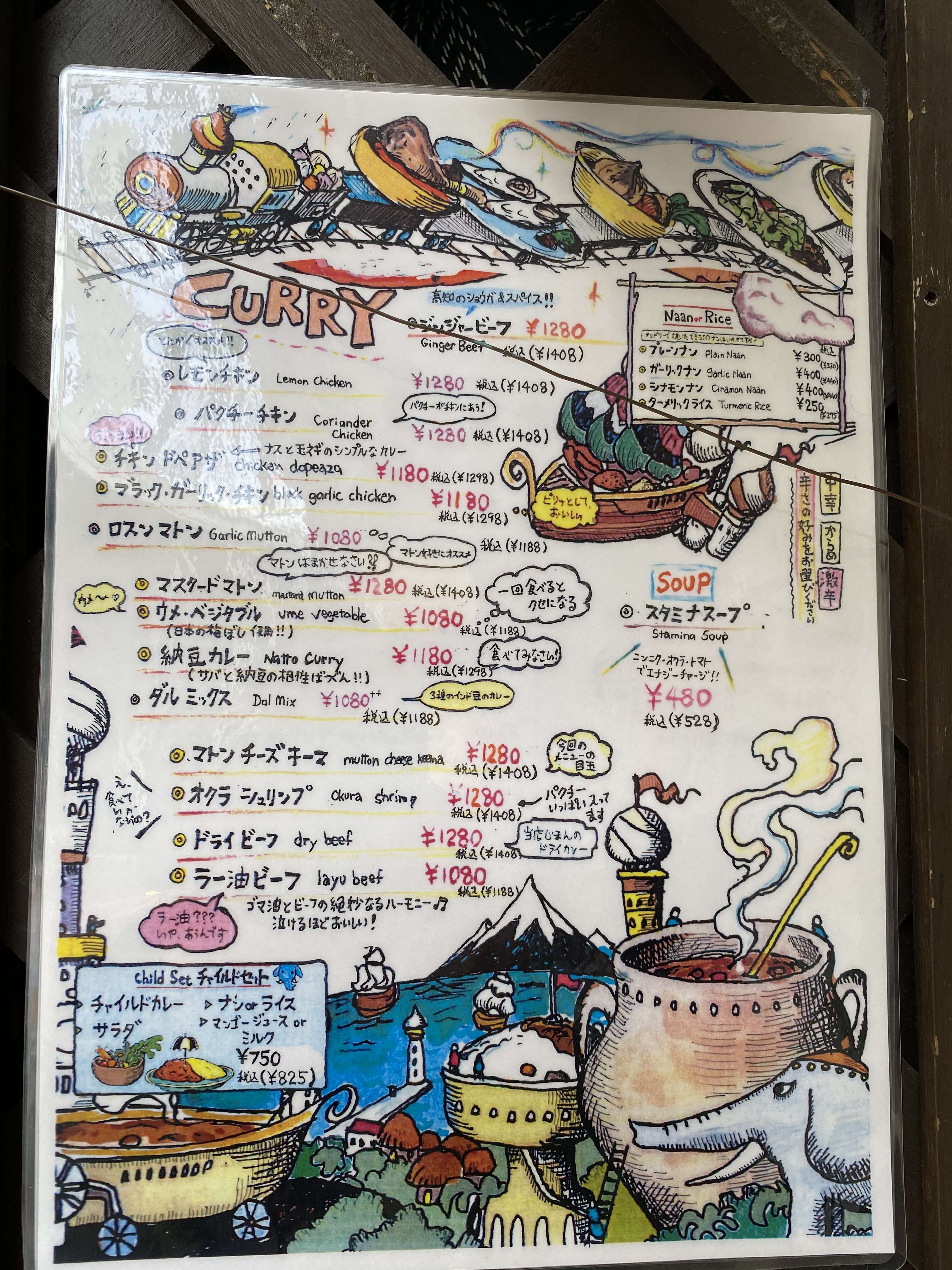 ディナータイムは梅や納豆など変わった素材を使ったおいしい創作インドカレーが楽しめます。
