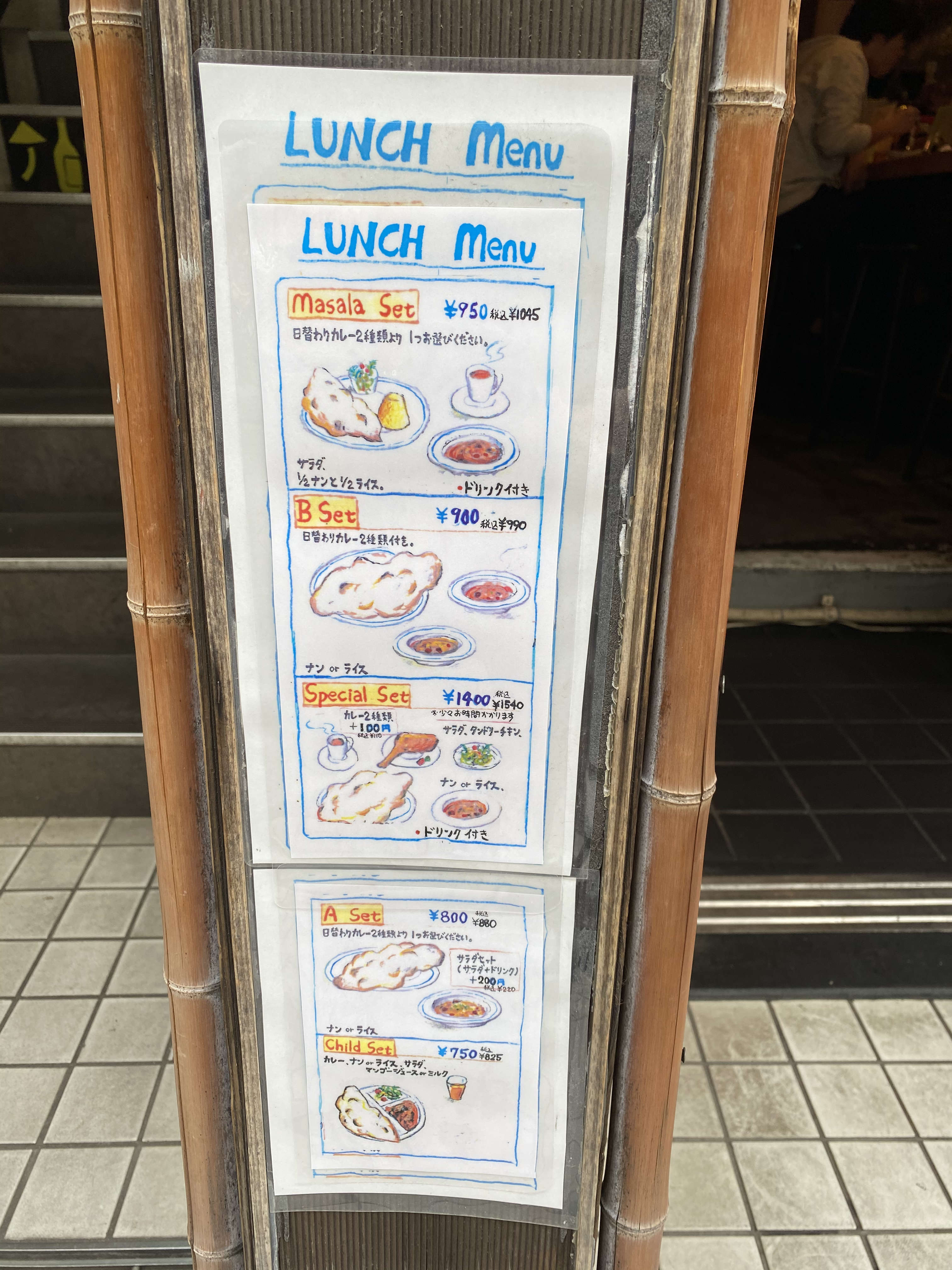 ディナーとは違いチキンカレーや野菜カレーなどシンプルなメニュー。