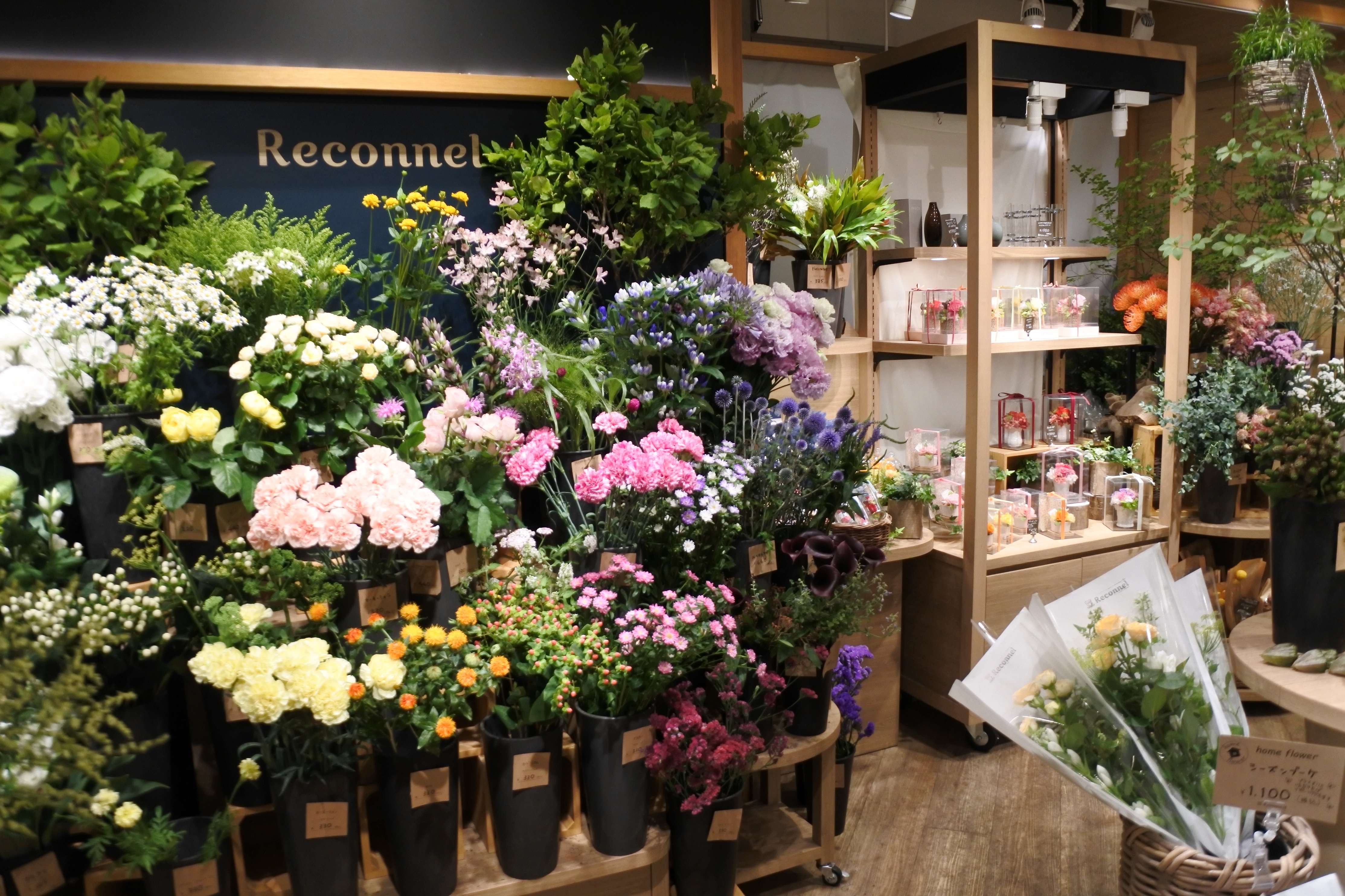 新百合ヶ丘駅の改札を出て北口方面へ進むと、小田急アコルデ新百合ヶ丘北館の入口があり、入ってすぐのところにフラワーショップ「Reconnel(ルコネル)」があります。