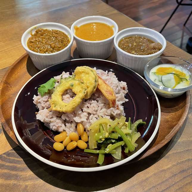 海老のココナッツカレー、ナス味噌キーマ、チキンカレーを注文しました。