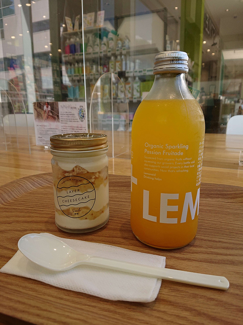 この日は、可愛い瓶に入ったパフェと、フルーツの炭酸飲料をイートインしました。