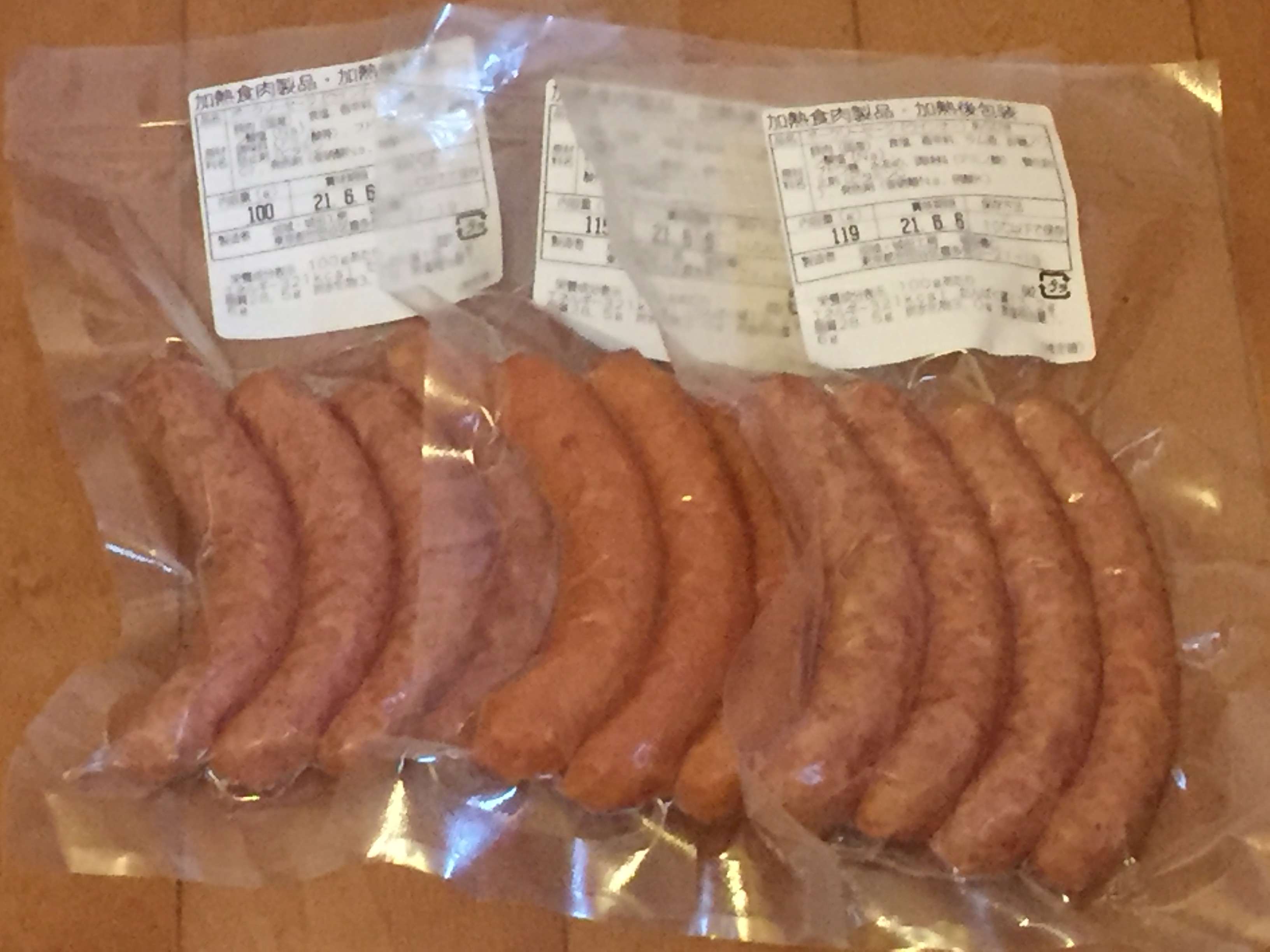 購入したソーセージ、プレーン、チョリソー、あらびき。
