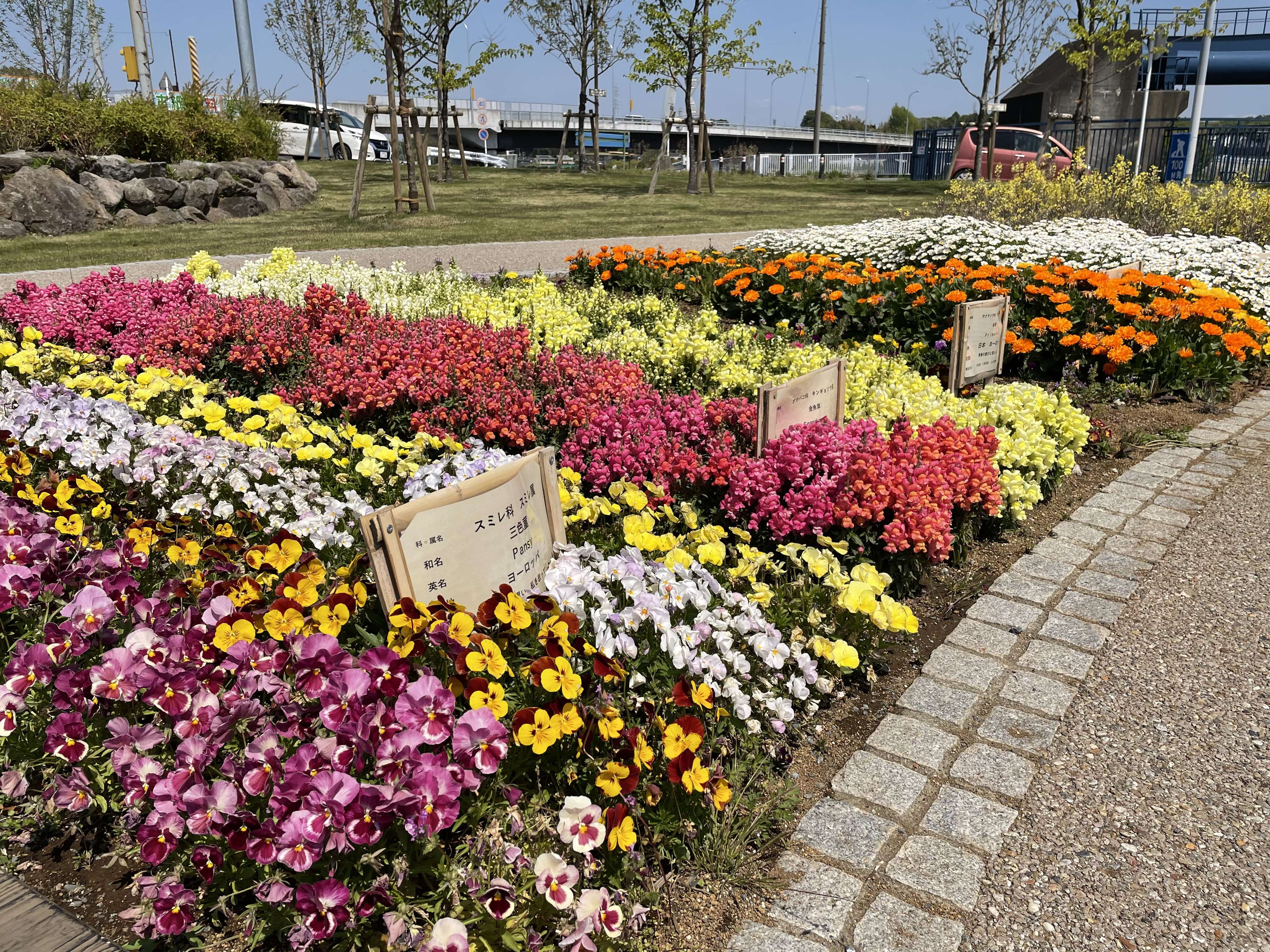 花壇には花の名前が書いてあって、教えてもらえるのが嬉しいです。