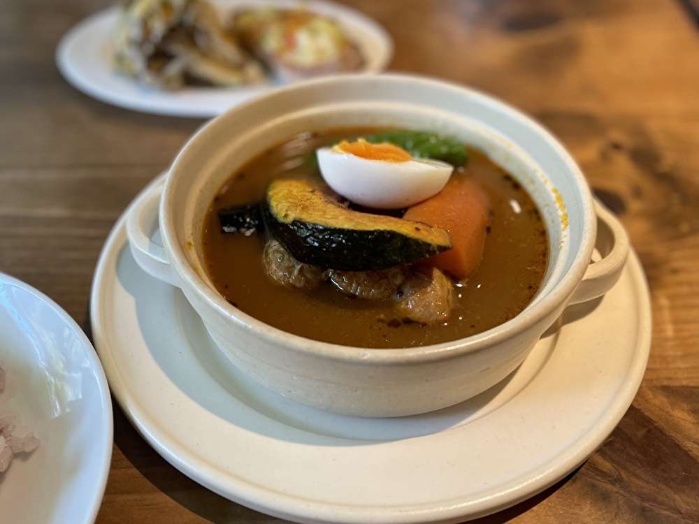 柔らかいチキンにお野菜ゴロゴロ、スパイスの効いたスープカレー!