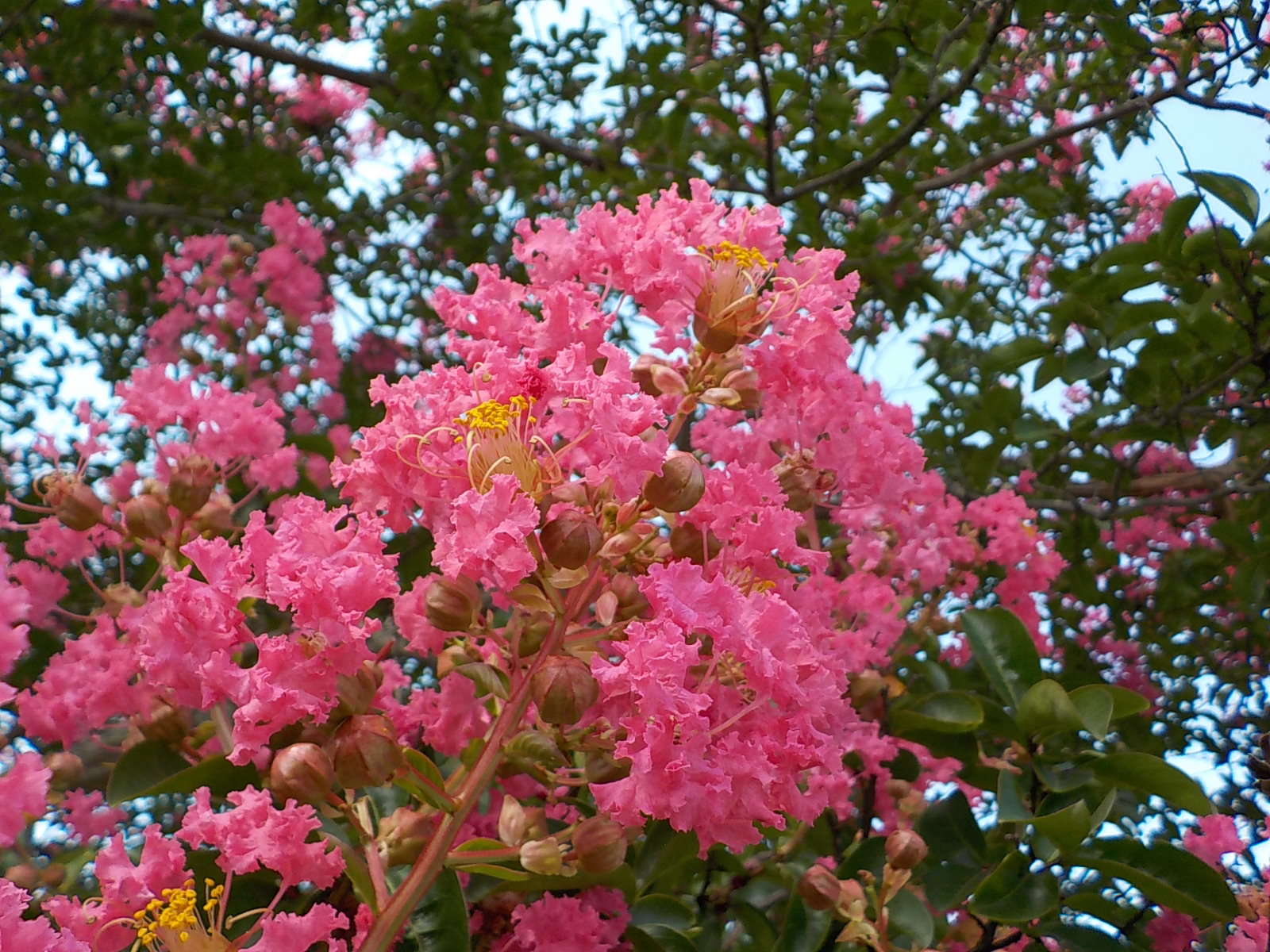 春にはサクラやフジ、夏にはムクゲやサルスベリなどが花を咲かせ、秋にはハギやコスモス、冬はサザンカやツバキなどが観られるでしょう。