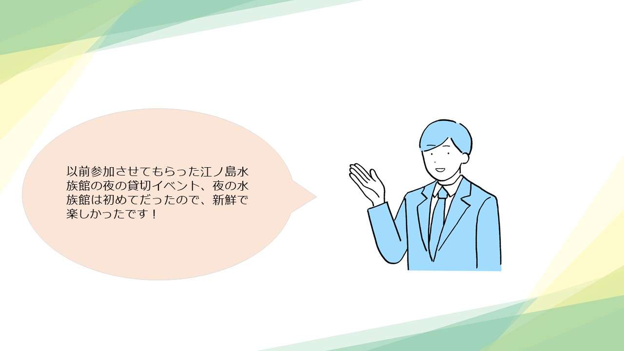 以前参加させてもらった江ノ島水族館の夜の貸切イベント、夜の水族館は初めてだったので、新鮮で楽しかったです!
