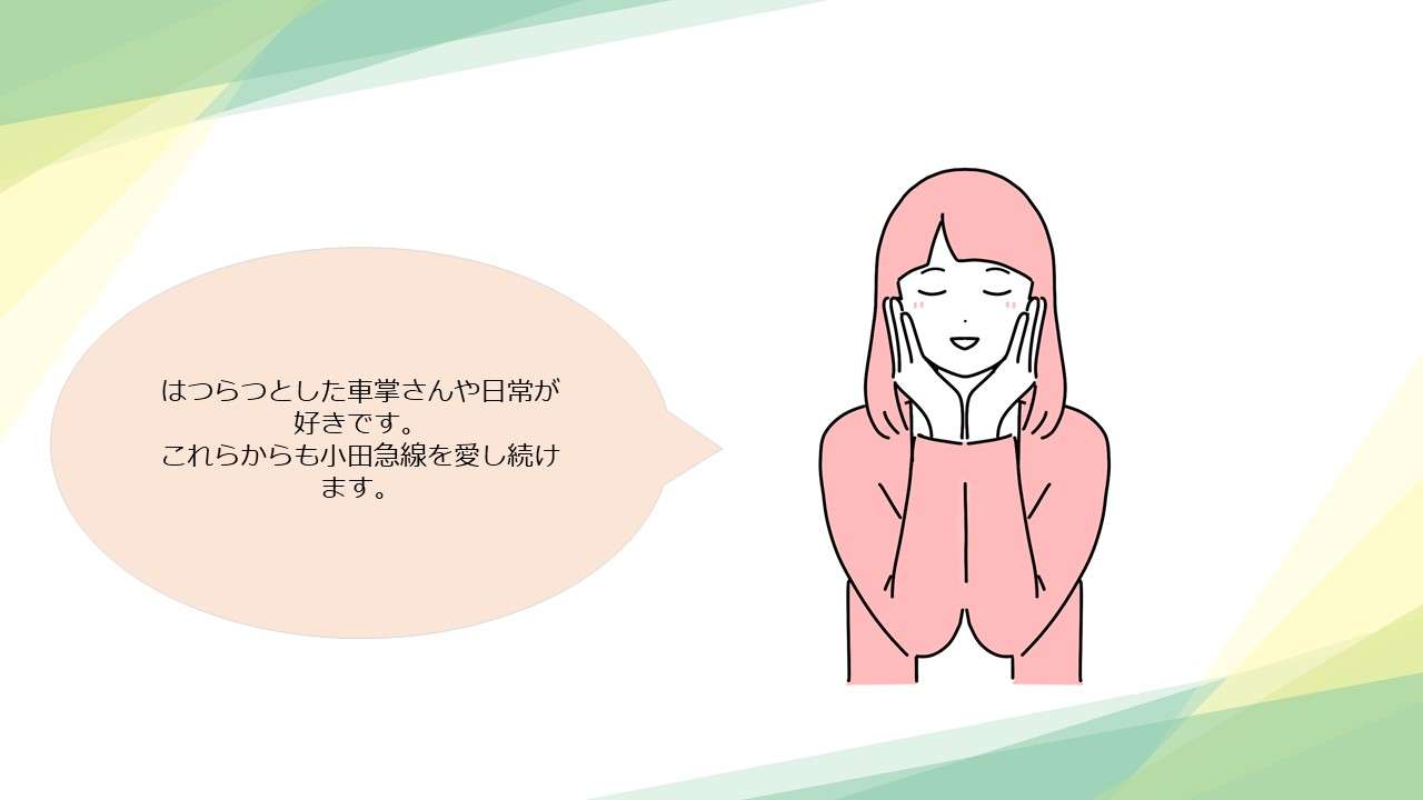 こんなエッセーを書きながら、私は小田急線も好きだけど、車掌さんはもっとスキなんだと気づく。