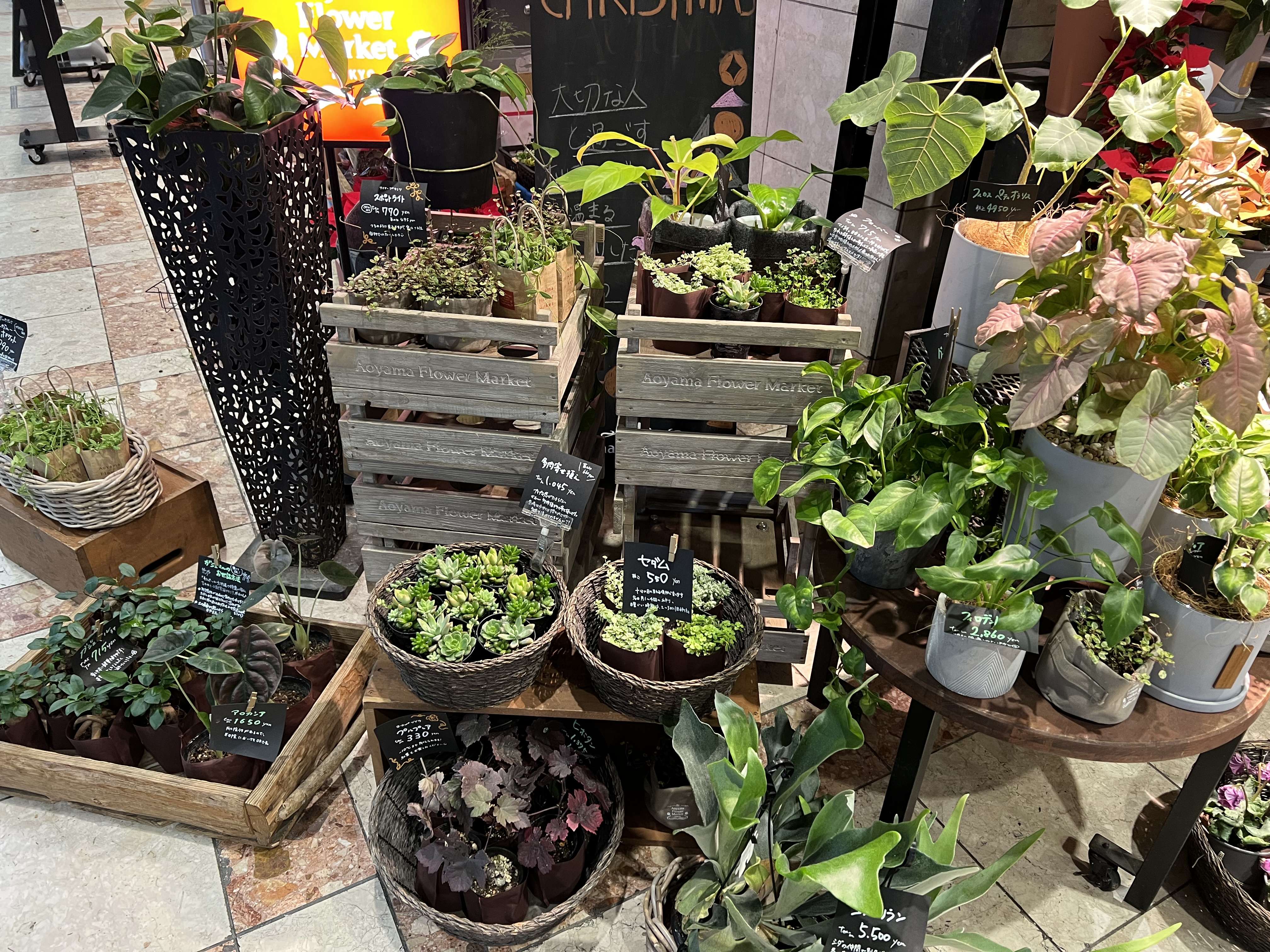 今話題の多肉植物や、ヒューケラ、ガジュマルなども売られています。