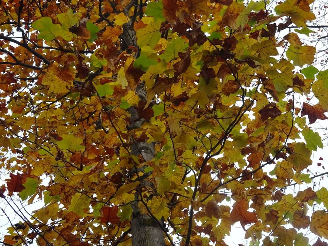 背の高い木の葉の1枚1枚が色づいて見事な紅葉です