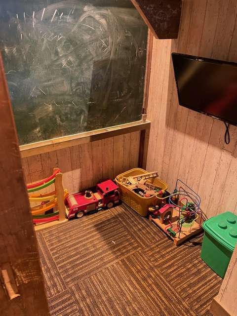 他にも黒板や木のおもちゃなど、狭いけれども充実したスペースは幅広い年齢の子どもたちが使える便利な空間になっています。