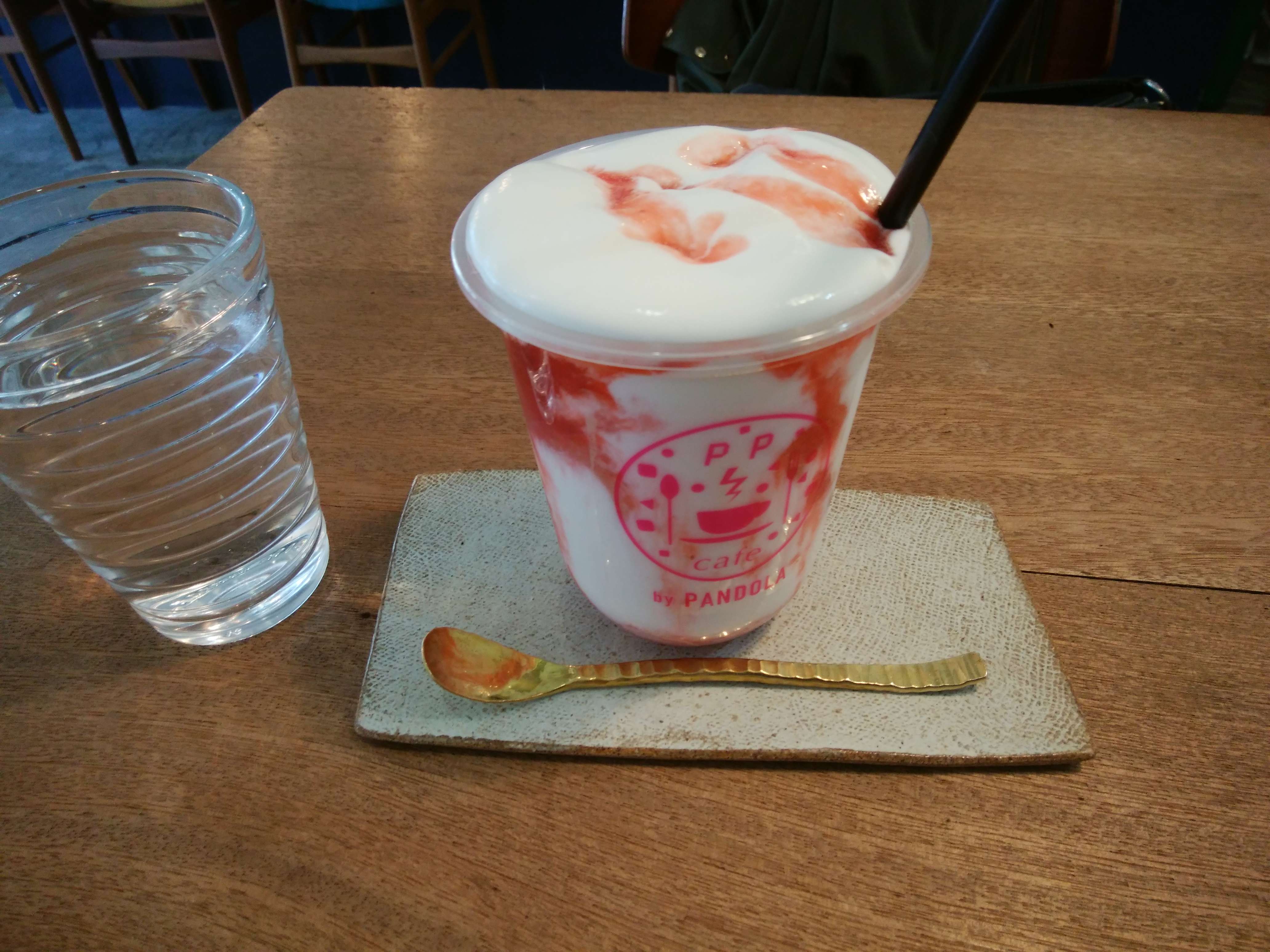 ビエンナという甘い飲み物がオススメっぽいので、いちごビエンナを注文。