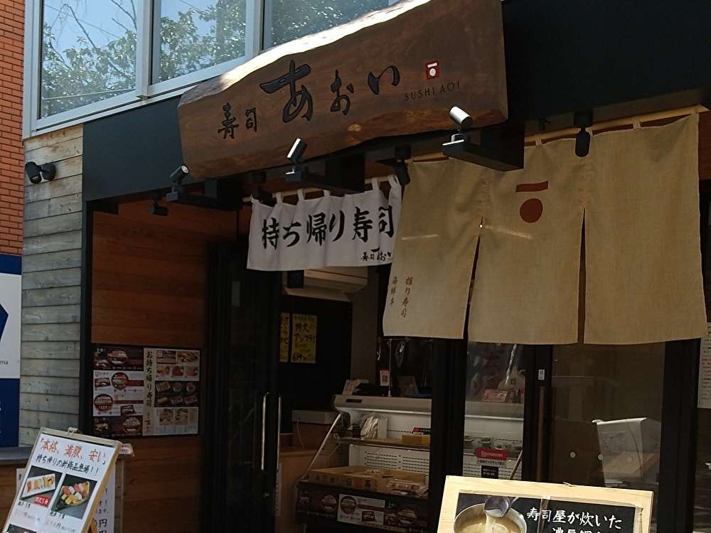 成城学園前から徒歩2分ほどのところに、木でできた看板が特徴的な「寿司 あおい 成城店」があります。