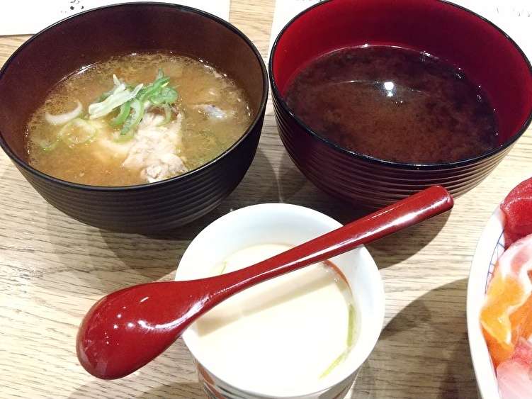 お味噌汁が2種類から選べるのかと思いきや、店員さんが「お2つともお出しできますよ。」と声をかけてくれたので、2つともいただいちゃいました。