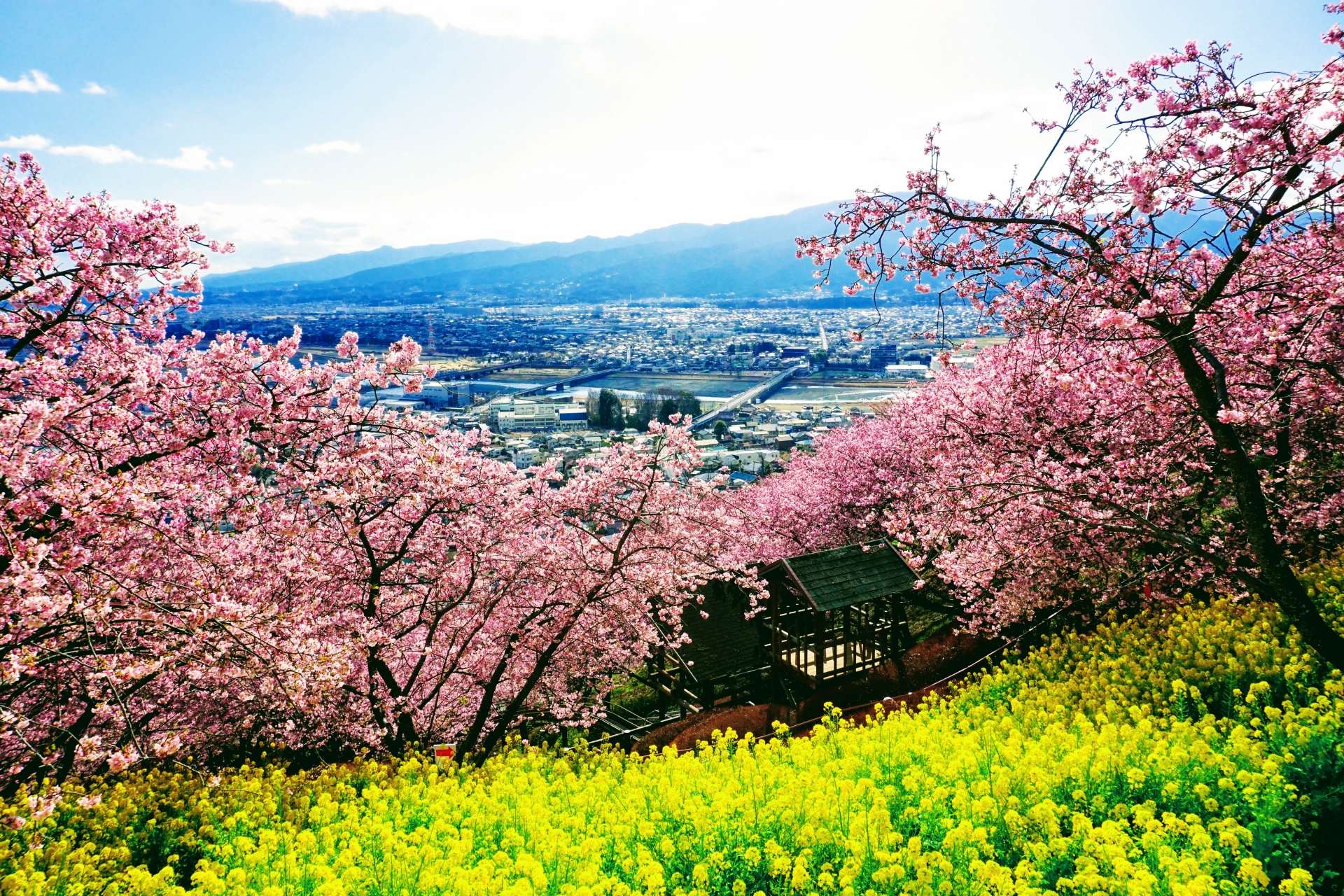 ガーデンの社名には約360本にも及ぶ河津桜が植えられており、その下には菜の花もたっぷり花を咲かせます。